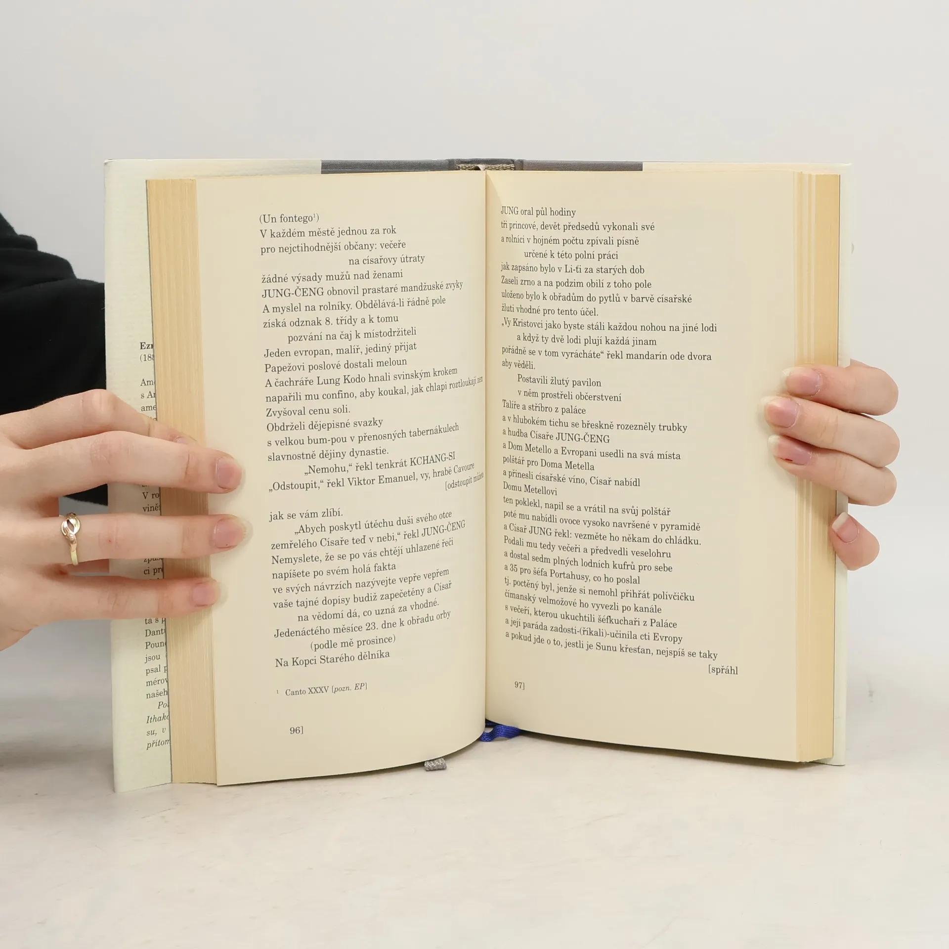 Soubor čínských dynastických Cantos vznikal od listopadu 1937 do března 1939 a poprvé vyšel v lednu 1940. Zdrojem k Čínským Cantos byly Poundovi francouzské dějiny Číny Histoire générale de la Chine ou Annales de cet Empire (Paříž, 1777–1785, ve 13 svazcích). Za jejich autora bývá označován jezuitský misionář Joseph de Mailla (1669 ve Francii – 1748 v Pekingu). Jde však o komentovaný překlad starších čínských spisů vycházejících především z nejslavnějšího historického díla své doby (konec 11. století) C'-č tchung-ťien (Úplné zrcadlo ku pomoci těm, co vládnou), jehož autorem je S'-ma Kuang. Ezra Pound v tomto jediném chronologicky pojatém oddílu Cantos nevrství časové roviny, ale paralely se západní kulturou, a do své poezie začíná soustavně vřazovat ideogram coby plnovýznamovou součást, zvukovou i pojmovou. A jeho hledání dobré vlády se pevně ukotvuje v konfuciánství.