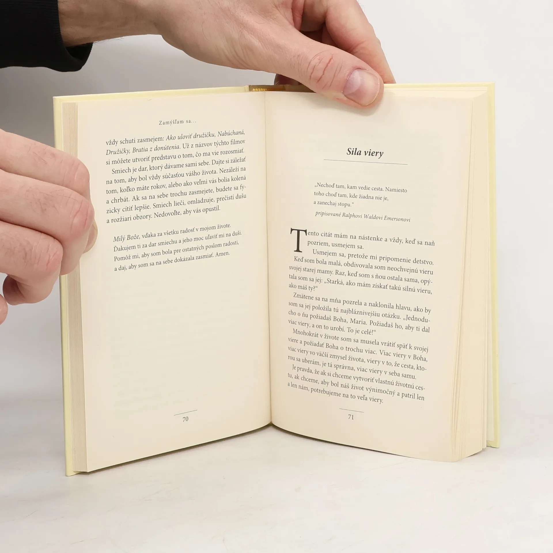 Ako prominentná osobnosť americkej kultúrnej scény, ale pôsobí aj v najrozličnejších oblastiach verejného života a zároveň matka štyroch detí Maria Shiverová veľmi dobre vie, aký môže byť každodenný život prekvapujúci, nepredvídateľný a stresujúci. V tejto pôsobivo a úprimne napísanej knihe sa rozhodla podeliť o podnetné a inšpirujúce úvahy sprevádzané citátmi známych osobností a krátkymi osobnými modlitbami, aby čitateľov povzbudila zamyslieť sa nad rôznymi aspektmi života, vyvolať v nich emócie, rozosmiať ich a pomôcť im na ceste k niečomu, čo sama nazýva otvoreným poľom – je to imaginárne miesto plné radosti, smiechu a priateľstva. Miesto, kde sa stretávajú vyrovnaní, cieľavedomí ľudia, aby spoločne snívali a budovali okolo seba krajší svet. Je to miesto plné nádeje a porozumenia.