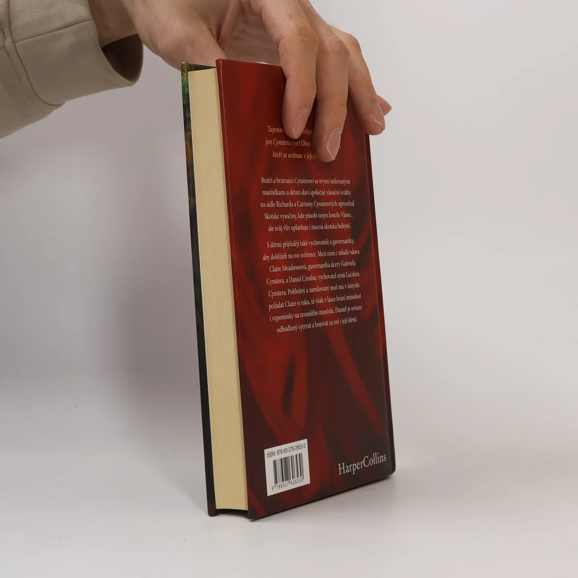 Tajemná skotská bohyně nepřeje lásce jen Cynsterovým! Ohroženi jsou všichni, kteří se ocitnou v jejich blízkosti… Bratři a bratranci Cynsterovi se svými milovanými manželkami a dětmi slaví společně vánoční svátky na sídle Richarda a Catriony Cynsterových uprostřed Skotské vysočiny, kde působí nejen kouzlo Vánoc, ale svůj vliv uplatňuje i mocná skotská bohyně. S dětmi přijíždějí také vychovatelé a guvernantky, aby dohlíželi na své svěřence. Mezi nimi i mladá vdova Claire Meadowsová, guvernantka dcery Gabriela Cynstera, a Daniel Crosbie, vychovatel synů Lucifera Cynstera. Pohledný a zamilovaný muž má v úmyslu požádat Claire o ruku, té však v lásce brání minulost i vzpomínky na zesnulého manžela. Daniel je ovšem odhodlaný vytrvat a bojovat za své i její štěstí.
