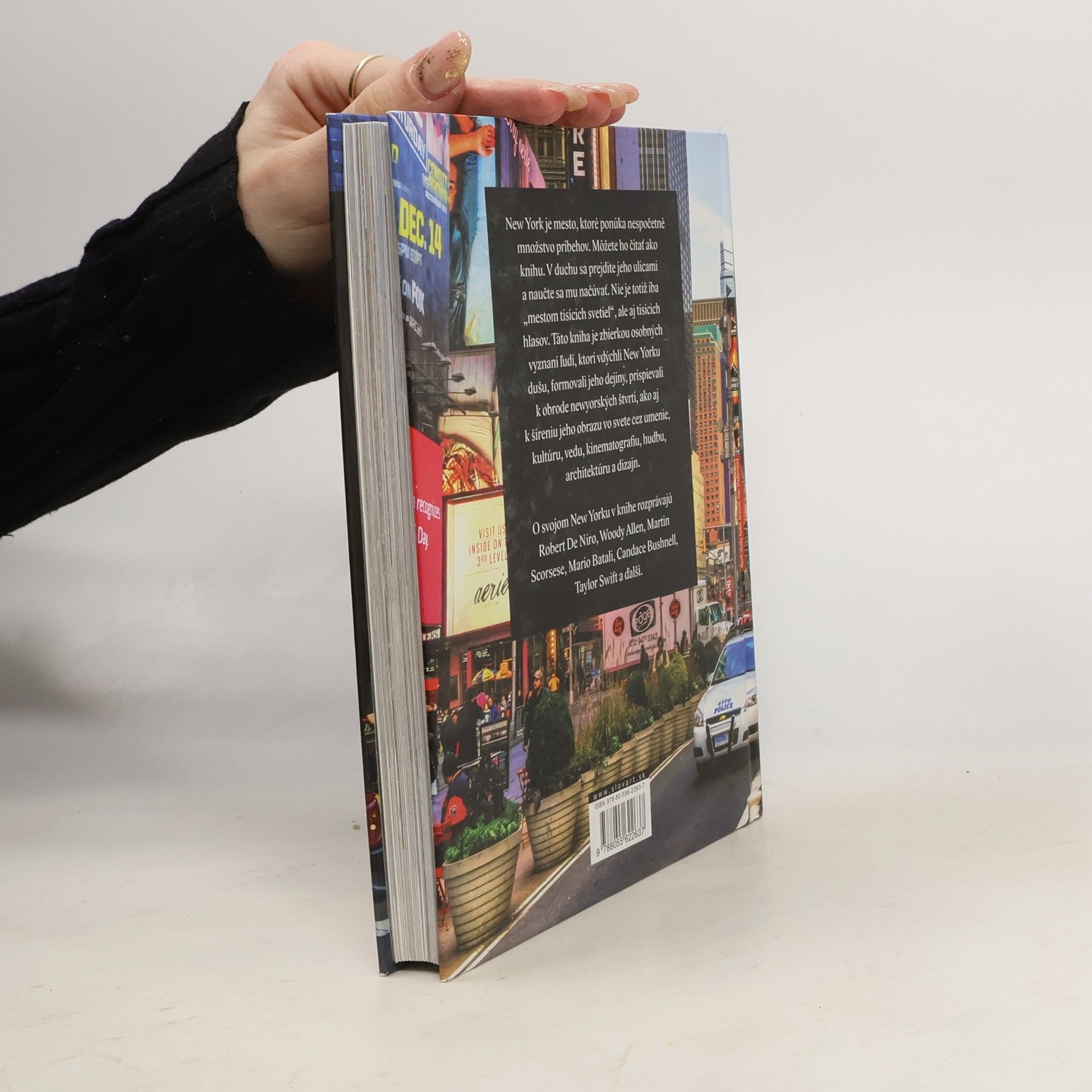 New York je mesto, ktoré ponúka nespočetné množstvo príbehov. Môžete ho čítať ako knihu. V duchu sa prejdite jeho ulicami a naučte sa načúvať mu. Nie je totiž iba „mestom tisícich svetiel", ale aj tisícich hlasov. Táto kniha je zbierkou osobných vyznaní ľudí, ktorí vdýchli New Yorku dušu, formovali jeho dejiny, prispievali k obrode newyorských štvrtí, ako aj k šíreniu jeho obrazu vo svete cez umenie, kultúru, vedu, kinematografiu, hudbu, architektúru a dizajn. O svojom New Yorku rozprávajú: Robert De Niro, Woody Allen, Martin Scorsese, Mario Batali, Candace Bushnell, Taylor Swift a ďalší.