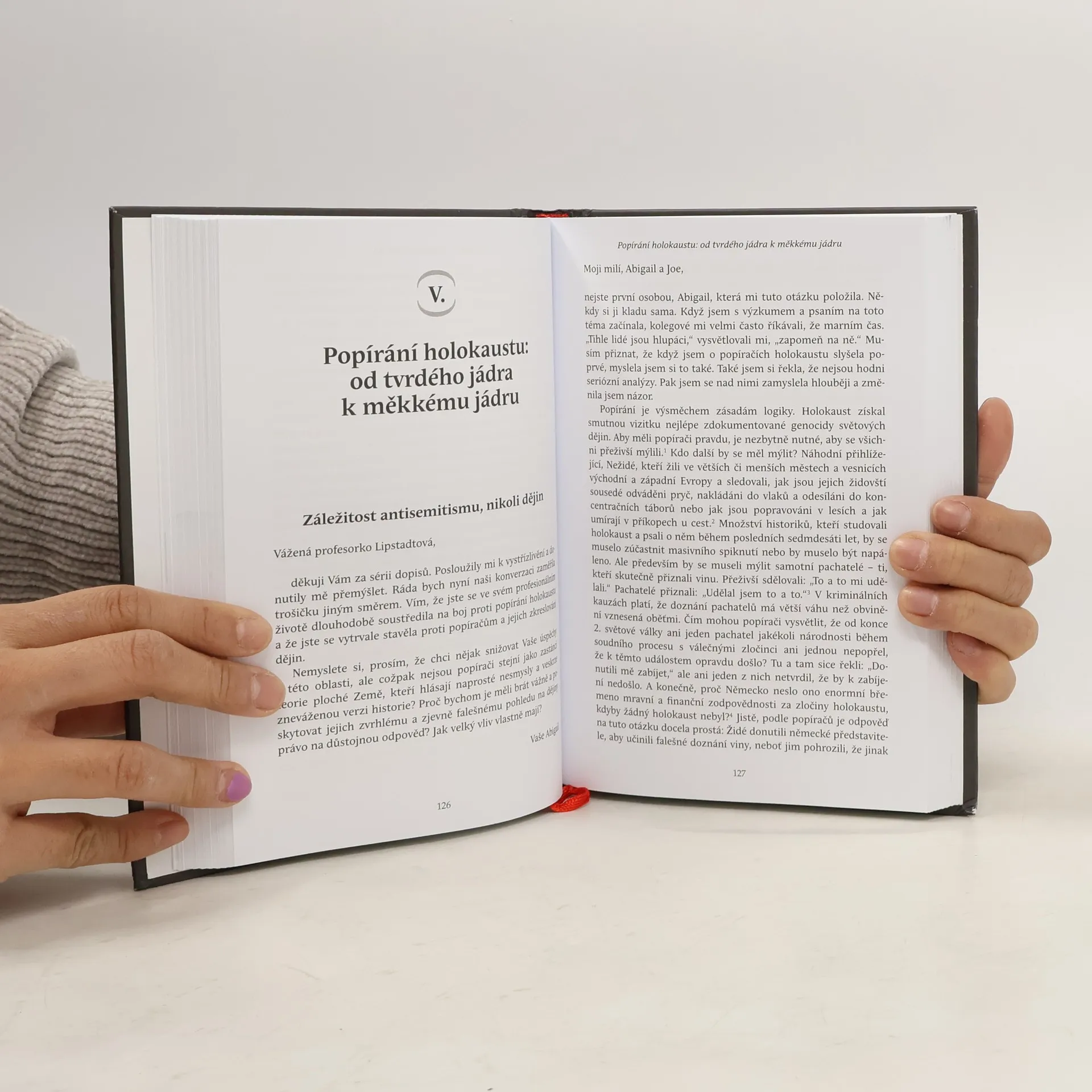 Autorka se zabývá otázkou současného antisemitismu, neboť v posledních letech byl zaznamenán nápadný nárůst výskytu antisemitských projevů fyzické i rétorické povahy. Autorka se ptá: týká se veškerá kritika výhradně státu Izrael? Vidíme antisemitismus tam, kde žádný není? Odmítají někteří vidět antisemitismus tam, kde evidentně je? Upozorňuje, že když jsou terčem nenávistné rétoriky a předpojatosti Židé, logicky se nemohou cítit bezpečně ani ostatní menšiny; je pravděpodobné, že Židy to neskončí. A platí to i opačně: pokud se terčem nenávisti a předsudků stane jiná menšina, Židé by neměli mít pocit, že jsou proti takové zášti imunní; je pravděpodobné, že ani těmito skupinami to neskončí. Text je koncipován jako korespondenční dialog profesorky Lipstadtové s fiktivními postavami pedagoga Joea a studentky Abigail. Oba mladí lidé, znepokojení projevy antisemitismu ve svém okolí a všude na světě, kladou své mentorce otázky a ona v odpovědích odhaluje podstatu, kořeny, skryté projevy a důsledky antisemitských tendencí v moderní společnosti.