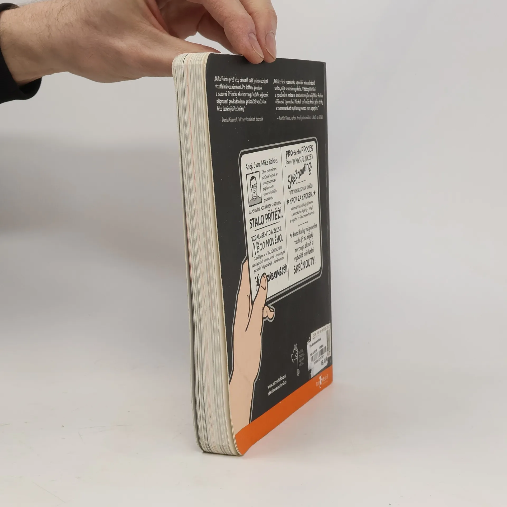 Mika Rohdeho a jeho práci znáte – je ilustrátorem oblíbených knih Restart a Startup za pakatel. Tentokrát však není jen tvůrcem doplňkových obrázků k textu jiného autora, ale také pionýrem nového stylu práce pod tajemným názvem skečnouting. Mike vlastně jen pojmenoval svou celoživotní vášeň zapisovat si myšlenky a postřehy pomocí náčrtků, ikon a čmáranic. Autor vás ve své knize v několika jednoduchých, pochopitelných a pro všechny zvládnutelných krocích naučí zábavnou a efektivní metodu, jak se vyrovnat se záplavou informací valících se na nás na poradách, konferencích, školeních a přednáškách. Skečnouting jako přístup k osobnímu zpracování informací se stává světovým hitem. Ač to tak na první pohled nemusí vypadat, chytré naslouchání v kombinaci s vizualizací toho nejpodstatnějšího se po chvíli stane přirozeností i u těch, kteří o sobě tvrdí, že kreslit neumí. Příručka skečnoutingu je plně ilustrovaná kniha představující také příběh vzniku skečnoutingu - proč a jak jej můžete použít k vizuálnímu uchopení myšlenek a nápadů, k zapamatování klíčových informací a k pochopitelnému znázornění tématu ostatním. Svým způsobem jde o rozvinutí tématu knihy Nápady na ubrousku, v tomto případě však pojaté z pohledu umělce a výtvarníka. Díky knize se naučíte používat tuto techniku nezávisle na vašich uměleckých schopnostech a zapisování/zakreslování poznámek nejen z odposlechu se tak stane vaší vyhledávanou metodou a zábavou.