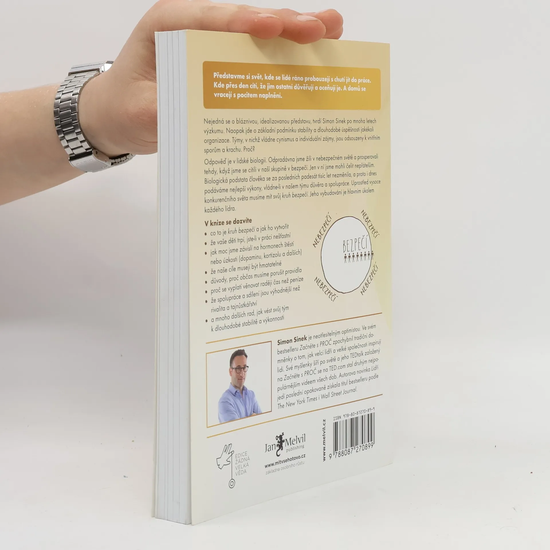 Silný titul pro každého, kdo chce úspěšně vést malý tým, firmu či velkou organizaci. Simon Sinek, antropolog, konzultant a autor bestselleru Začněte s proč ve své nové knize představuje principy moderního vůdcovství. Ukazuje, proč někteří lídři uspěli a jiní své podnikání potopili. Vůdcovství není o řízení — ale o schopnosti inspirovat a obětování se.
