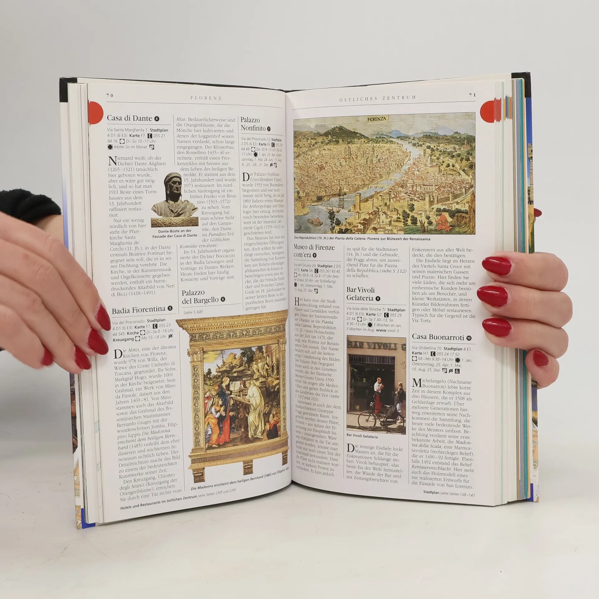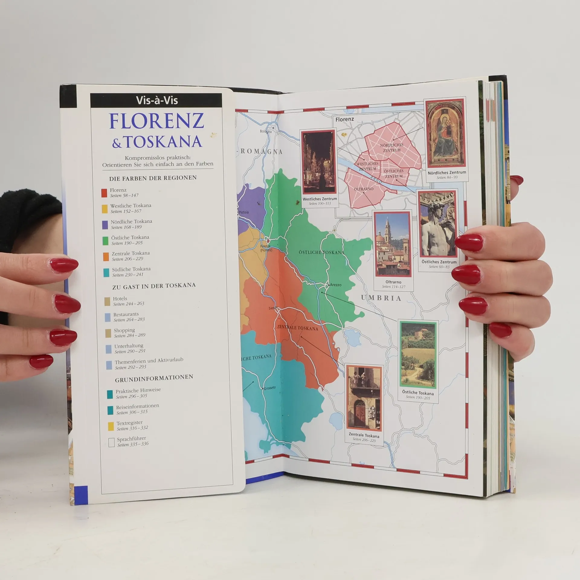 Für ihre Kunst, Geschichte und Landschaft ist die Toskana verdientermaßen weltberühmt. In den historischen Städten voller Palazzi, Kirchen und Museen verschmelzen Vergangenheit und Gegenwart auf unvergleichliche Art und Weise. Mit dem Vis-à-Vis-Reiseführer Florenz & Toskana lernen Sie diese großartige Region und ihre traumhafte Stadt Florenz von ihrer schönsten Seite kennen. Hervorragende Abbildungen – exakte Schnittzeichnungen, dreidimensionale Grundrisse, Übersichtskarten und Stadtpläne – erleichtern Ihnen die Orientierung vor Ort. Jetzt mit Extrakarte zum Herausnehmen.