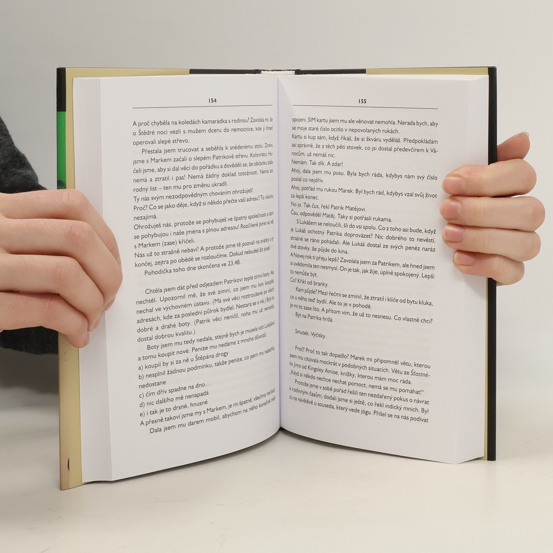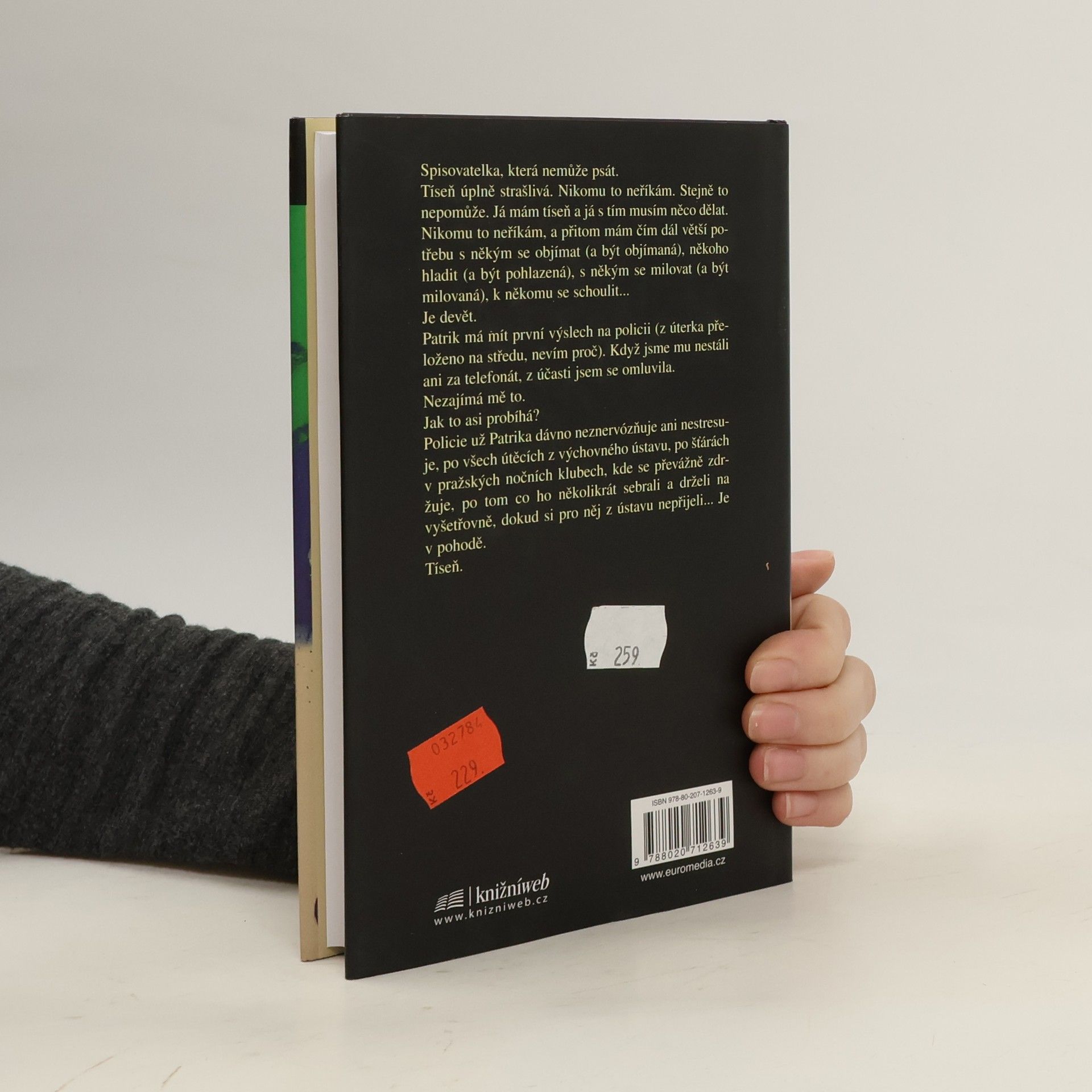 Spisovatelka, která nemůže psát. Tíseň úplně strašlivá. Nikomu to neříkám. Stejně to nepomůže. Já mám tíseň a já s tím musím něco dělat. Nikomu to neříkám a přitom mám čím dál větší potřebu s někým se objímat (a být objímaná), někoho hladit (a být pohlazená), s někým se milovat (a být milovaná), k někomu se schoulit... Je devět. Patrik má mít první výslech na policii (z úterka přeloženo na středu, nevím proč). Když jsme mu nestáli ani za telefonát, z účasti jsem se omluvila. Nezajímá mě to. Jak to asi probíhá? Policie už Patrika dávno neznervózňuje ani nestresuje, po všech útěcích z výchovného ústavu, po šťárách v pražských nočních klubech, kde se převážně zdržuje, po tom, co ho několikrát sebrali a drželi na vyšetřovně, dokud si pro něj z ústavu nepřijeli... Je v pohodě. Tíseň.