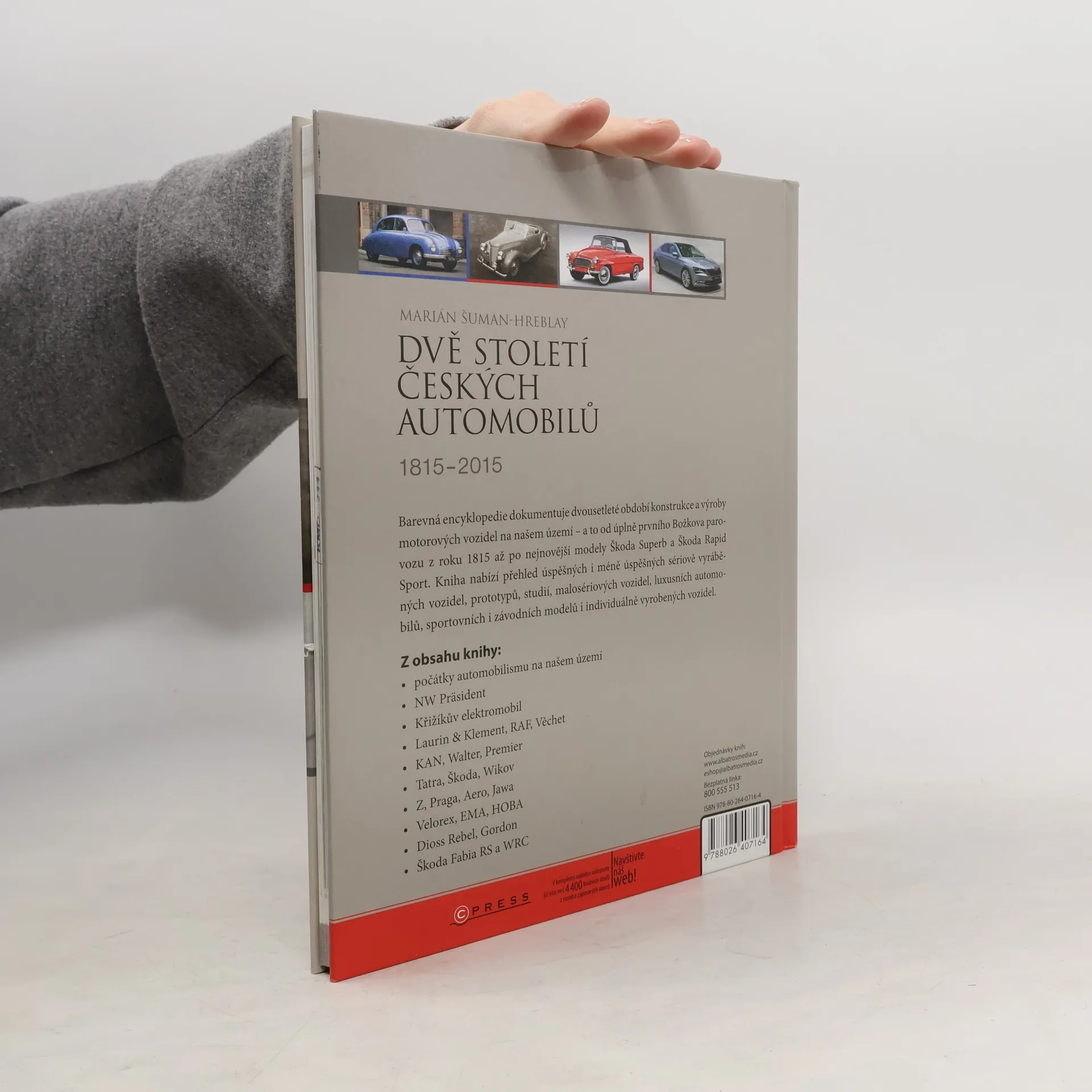 Nové doplněné a aktualizované vydání úspěšné publikace. Obrazová encyklopedie zachycuje více než dvousetleté období konstrukce a výroby motorových vozidel na našem území – a to od Božkova parovozu z roku 1815 až po nejnovější modely vozů Škoda. Nabízí přehled úspěšných i méně úspěšných sériově vyráběných vozidel, prototypů, studií, sportovních modelů i individuálně vyrobených vozidel.