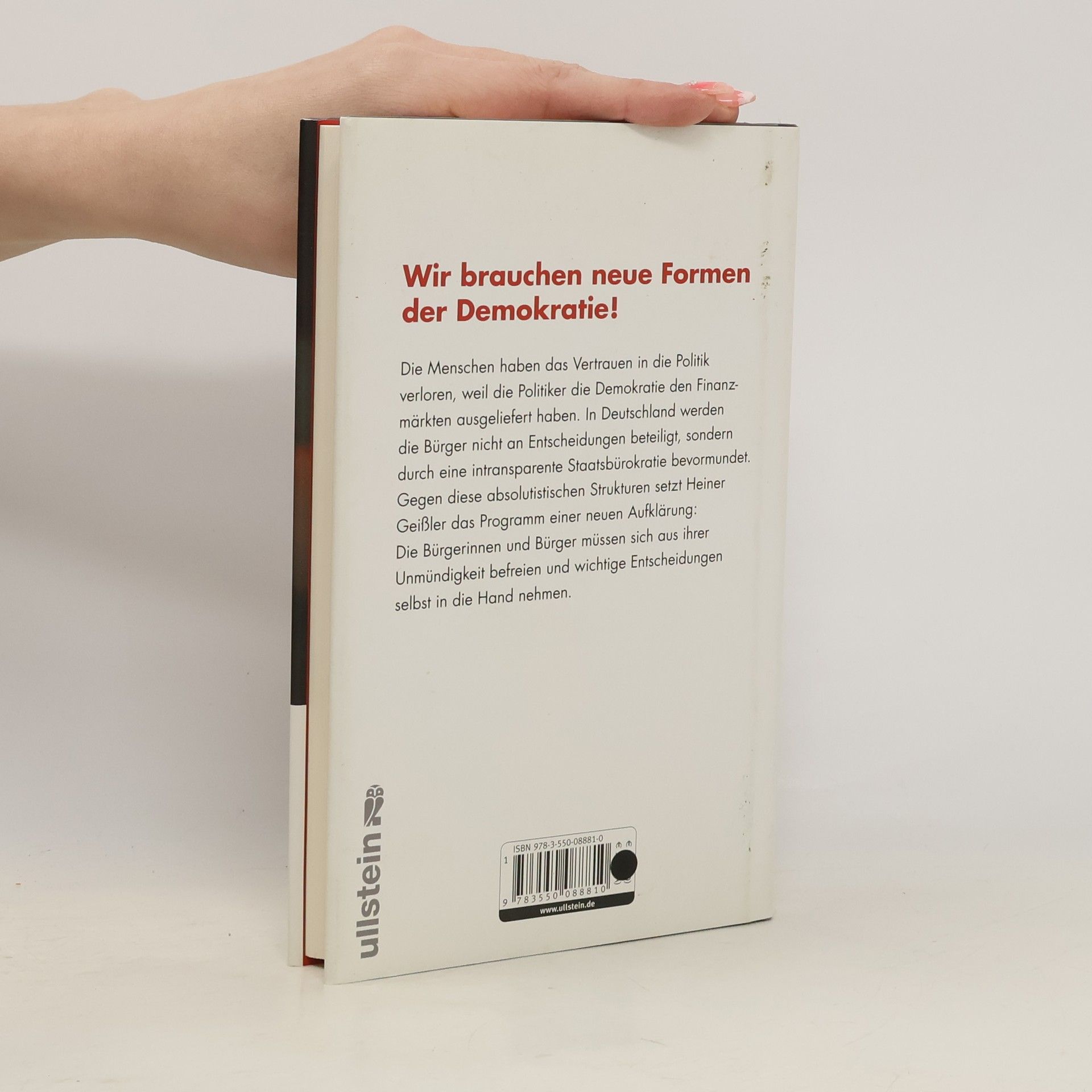 Der Faden ist gerissen: Politik und Bürger driften auseinander. Immer mehr Menschen wollen ihr Schicksal ohne die politischen Parteien selber in die Hand nehmen. Sie gehen nicht mehr zur Wahl, sondern auf die Straße. Diese Krise der Demokratie braucht eine Antwort. Flughafen Berlin, Stuttgart 21, Atomkraft, Schulreform: In Deutschland findet ein Bürgeraufstand statt. Heiner Geißler, der Schlichter von S 21, nennt die Hintergründe für den zivilgesellschaftlichen Widerstand gegen die offizielle Politik: Die Trennung von Geist und Macht, die Herrschaft der Märkte über die des Volkes, die Ökonomisierung der Gesellschaft, die fehlende Transparenz der bürokratischen Genehmigungsverfahren begründen die Krise der Demokratie ebenso wie die Defizite des Parlamentarismus in einer Mediendemokratie mit Internet und Facebook. Vor dem Hintergrund seiner Erfahrungen mit S 21 entwirft Geißler neue Formen einer Bürgerbeteiligungsdemokratie und offenen Diskursrepublik, die das verloren gegangene Vertrauen zurückgewinnen und der Demokratie neue Perspektiven geben können.