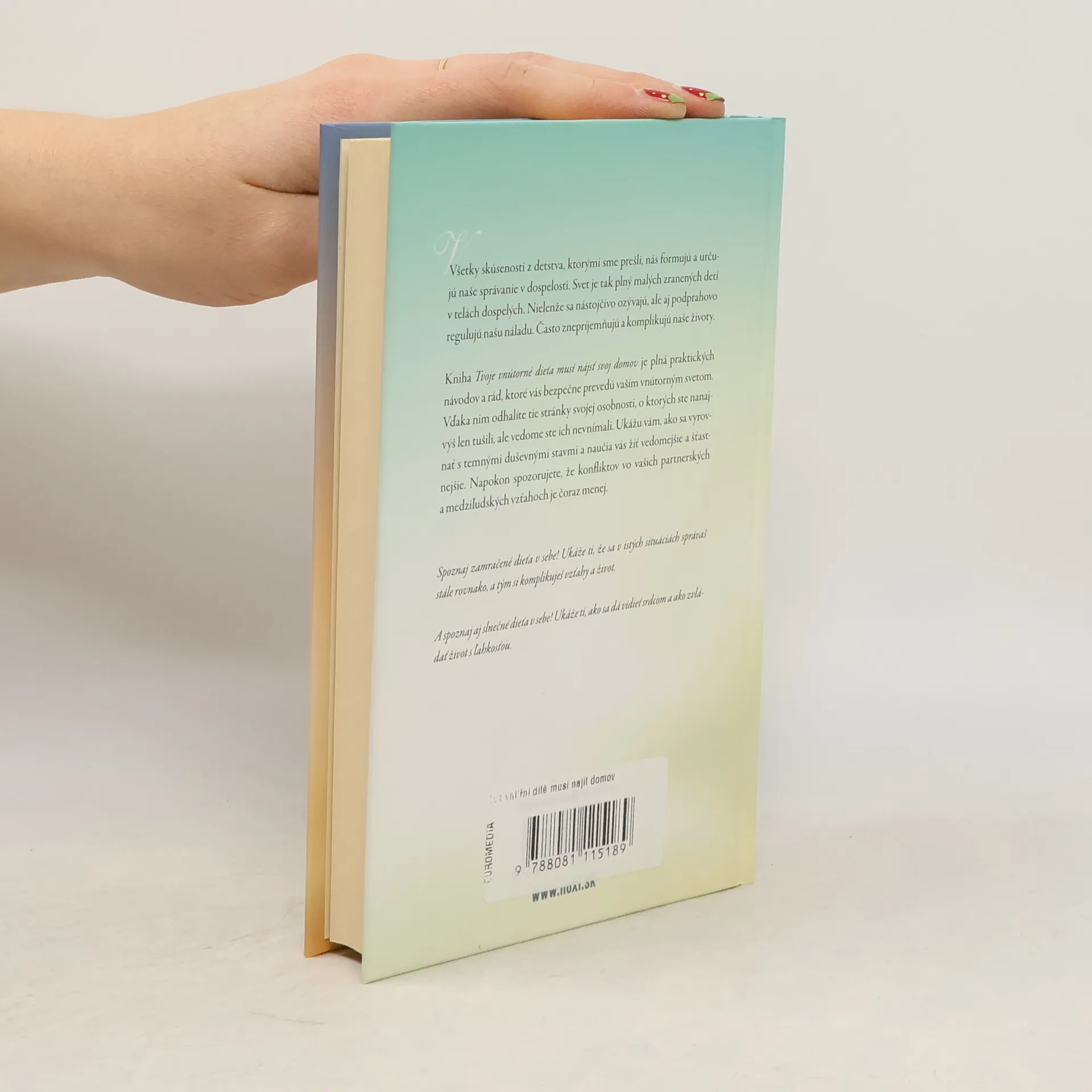 Všechny zážitky z dětství, kterými jsme prošli, nás formují a ovlivňují naše chování v dospělosti. Svět je tak plný malých zraněných dětí v tělech dospělých. Nejen že se tyto zraněné děti naléhavě ozývají, ale i podprahově regulují naši náladu, čímž často znepříjemňují a komplikují naše životy. Kniha Tvé vnitřní dítě musí najít domov je plná praktických návodů a rad, které vás bezpečně provedou vašim vnitřním světem a uzdraví vaše vnitřní dítě. Díky nim odhalíte ty stránky své osobnosti, o kterých jste nanejvýš jen tušili, ale vědomě jste je nevnímali. Ukáže vám, jak se vyrovnat s temnými duševními stavy, a naučí vás žít vědoměji a šťastněji. Postupně uvidíte, že vaše partnerské i mezilidské vztahy jsou čím dál harmoničtější. Poznej zamračené dítě v sobě! Ukáže ti, že se v určitých situacích chováš stále stejně, a tím si zbytečně komplikuješ vztahy i život. A poznej i své slunečné dítě v sobě. Ukáže ti, jak se dá vidět srdcem a jak zvládat život s lehkostí.