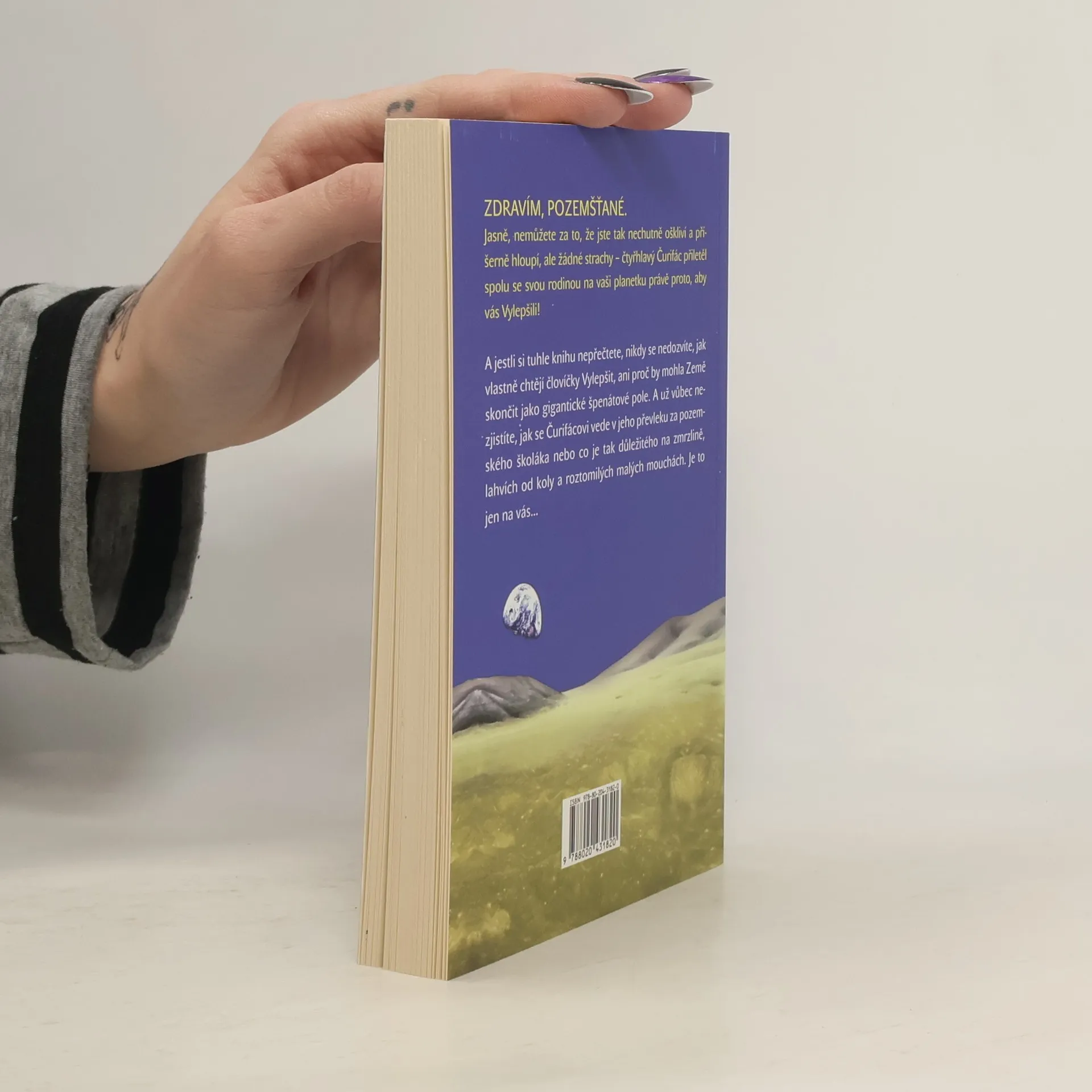 Drahý Rifzadeli, tak jsme tady, namačkaní v odporném „domě“ na Zemi, té nejnerudnější a nejohyzdnější planetě v celém vesmíru. Je tu příšerná zima, což není nic překvapivého vzhledem k tomu, že má tahle planeta jen jedno jediné slunce, a to po většinu času zakrývají mokré poletující hroudy, kterým se říká „mraky“. Klepu se jak pluglík a zuřím jako pytel škrabilušek. Tak začíná korespondence nebohého mimozemského školáka Čurifáce, který se s rodinou ocitl na planetě Zemi, aby pomohl „vylepšit“ její obyvatele. Musí splynout s davem, což obnáší spoustu problémů, jako jak vtěsnat všechna chapadla, hlavy, oči, žaludky a srdce do lidské schránky, jak ve škole zamaskovat, že je chytřejší než Einstein, a jak nalákat spolužáky do obřího Vylepšovacího stroje. K tomu všemu se k Zemi řítí Hrozgové, nejděsivější obyvatelé vesmíru, aby ji přeměnili v obří špenátové pole. Upozornění: Tuto knihu lze jen stěží dočíst do konce vzhledem k neustálým výbuchům nekontrolovatelného smíchu.