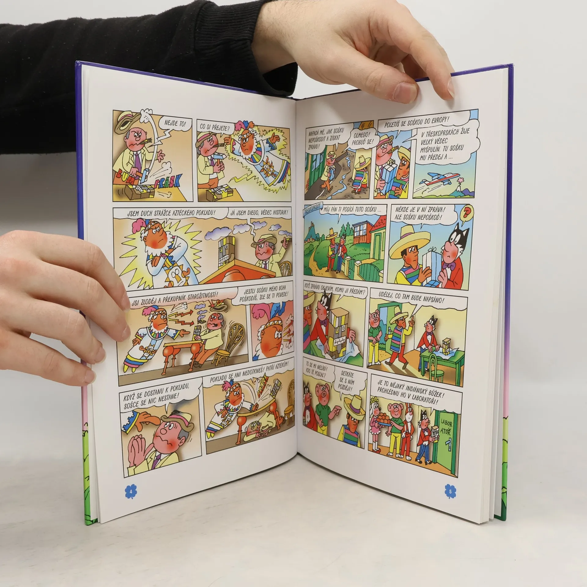 Popis: Čtyřlístek rozluští dávné tajemství Aztéků v Mexiku a vydá se do africké divočiny. Kolik překážek budou muset překonat a jak to celé nakonec dopadne? Kniha obsahuje dva příběhy Čtyřlístku: Poklad Aztéků - Jiří Poborák, Jaroslav Němeček Zrádná savana - Ljuba Štíplová, Jaroslav Němeček Poznámky: Poprvé tento soubor vyšel v roce 1997 - v menším formátu a pouze pod názvem Poklad Aztéků.