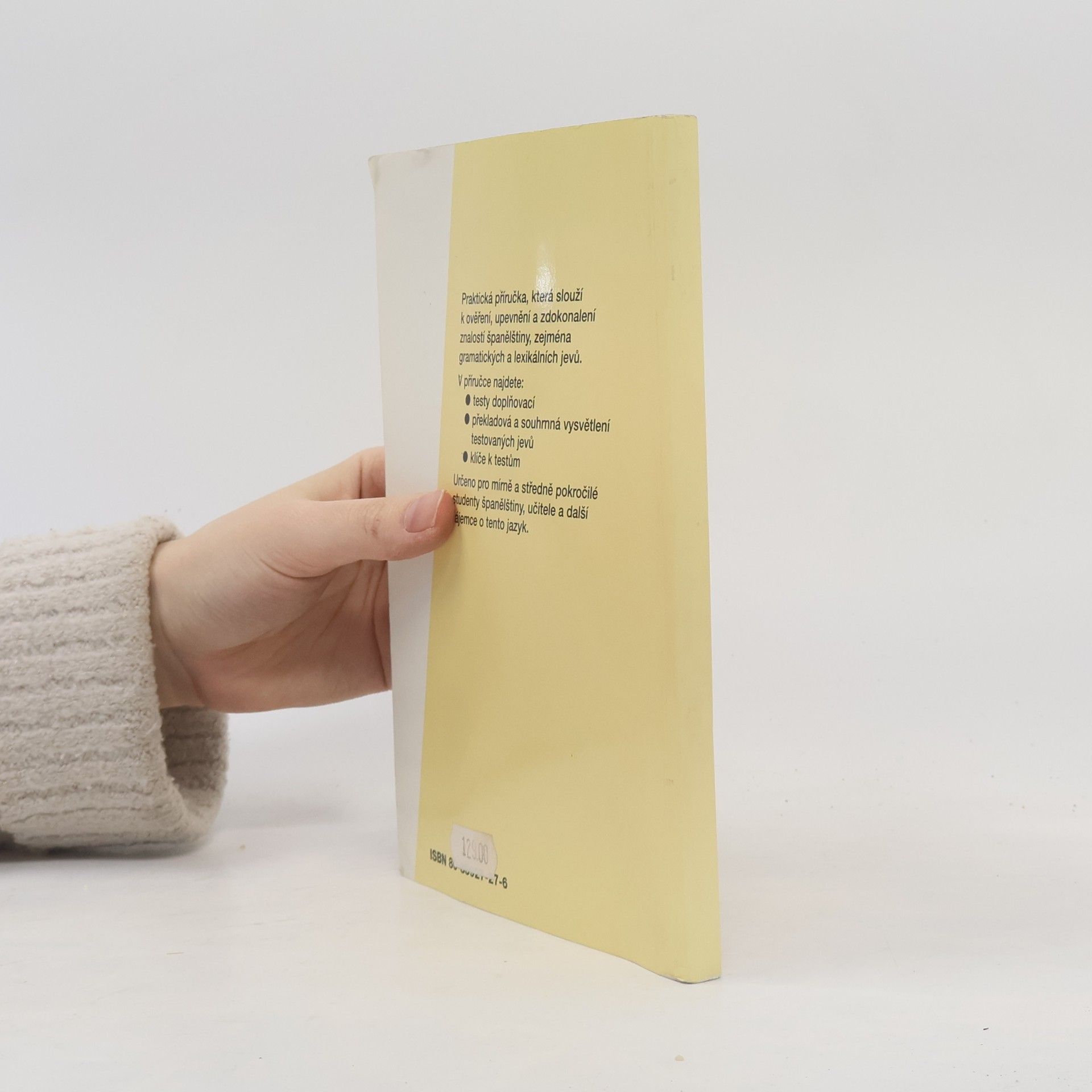 Praktická příručka obsahuje stručný popis španělské mluvnice spolu s cvičeními, která slouží k ověření, upevnění a zdokonalení znalostí španělštiny. Knížka je rozdělena do dvou částí, z nichž první je zaměřena na jednodušší a velmi frekventované jazykové jevy, druhá na jevyobtížnější. V každé části jsou napřed uvedeny španělské testové věty, do kterých je třeba doplnit chybějící výrazy. Při řešení formou výběru z nabídnutých možností napomáhá český překlad, správné řešení si lze ověřit v následujícím klíči. Zjistí-li student, že mu některé jevy dělají potíže, může si okamžitě nalézt potřebné informace v následujícím jasném a stručném výkladu příslušné gramatické a lexikální látky. Za výkladem následují překladová cvičení, v nichž si student ověří, do jaké míry zvládnul právě probranou látku. I tato cvičení jsou opatřena klíčem, stejně jako závěrečné testové věty, které jsou zaměřeny na kombinaci jevů procvičovaných v předcházejících částech. Příručka je určena studentům ve školách a kursech, samoukům a všem zájemcům o španělštinu až do úrovně středně pokročilých jako doplněk ke kterékoliv základní učebnici.