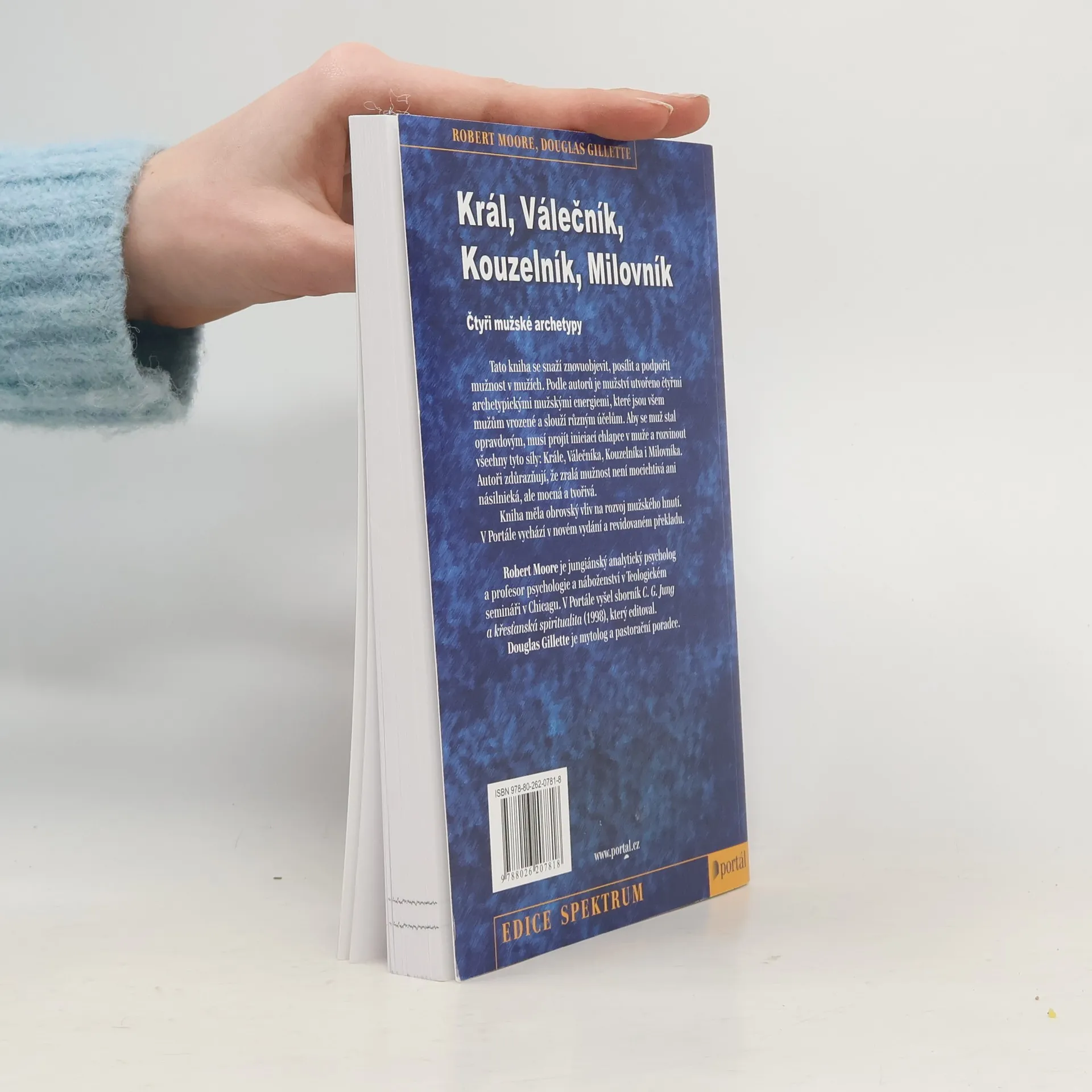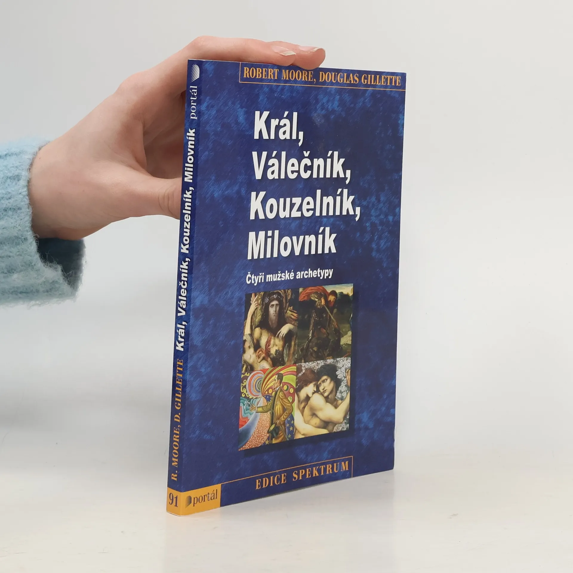 Podtitul: Čtyři mužské archetypy. Tato kniha se snaží znovuobjevit, posílit a podpořit mužnost v mužích. Podle autorů je mužství utvořeno čtyřmi archetypickými mužskými energiemi, které jsou všem mužům vrozené a slouží různým účelům. Aby se muž stal opravdovým, musí projít iniciací chlapce v muže a rozvinout všechny tyto síly: krále, válečníka, kouzelníka i milovníka. Zralá mužnost není mocichtivá ani násilnická, ale mocná a tvořivá. Společně s Blyovým Železným Janem měla kniha obrovský vliv na rozvoj mužského hnutí. Robert Moore je jungiánský analytický psycholog a profesor psychologie a náboženství v Teologickém semináři v Chicagu. V Portálu vyšel sborník C. G. Jung a křesťanská spiritualita (1998), který editoval. Douglas Gillette je mytolog a pastorační poradce.