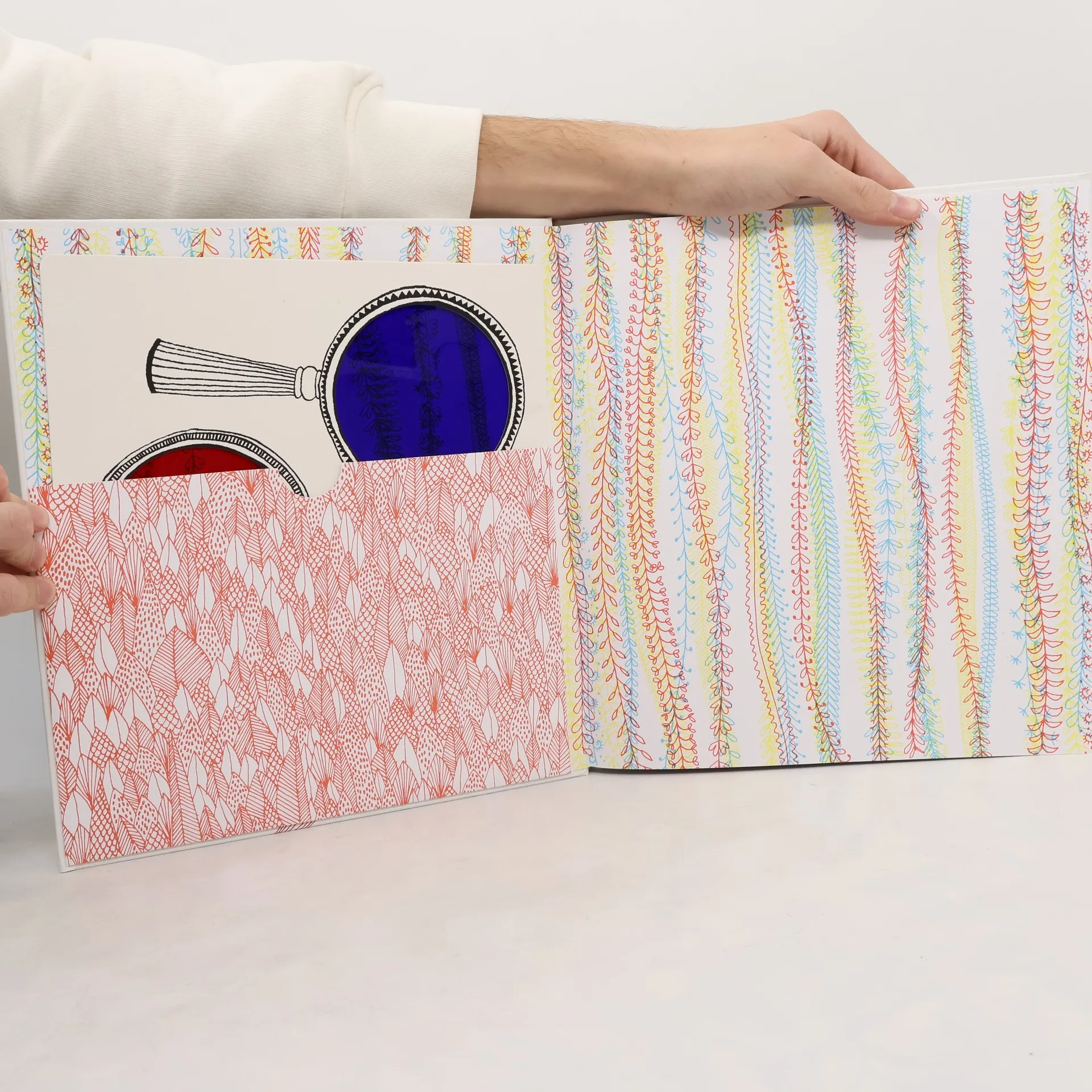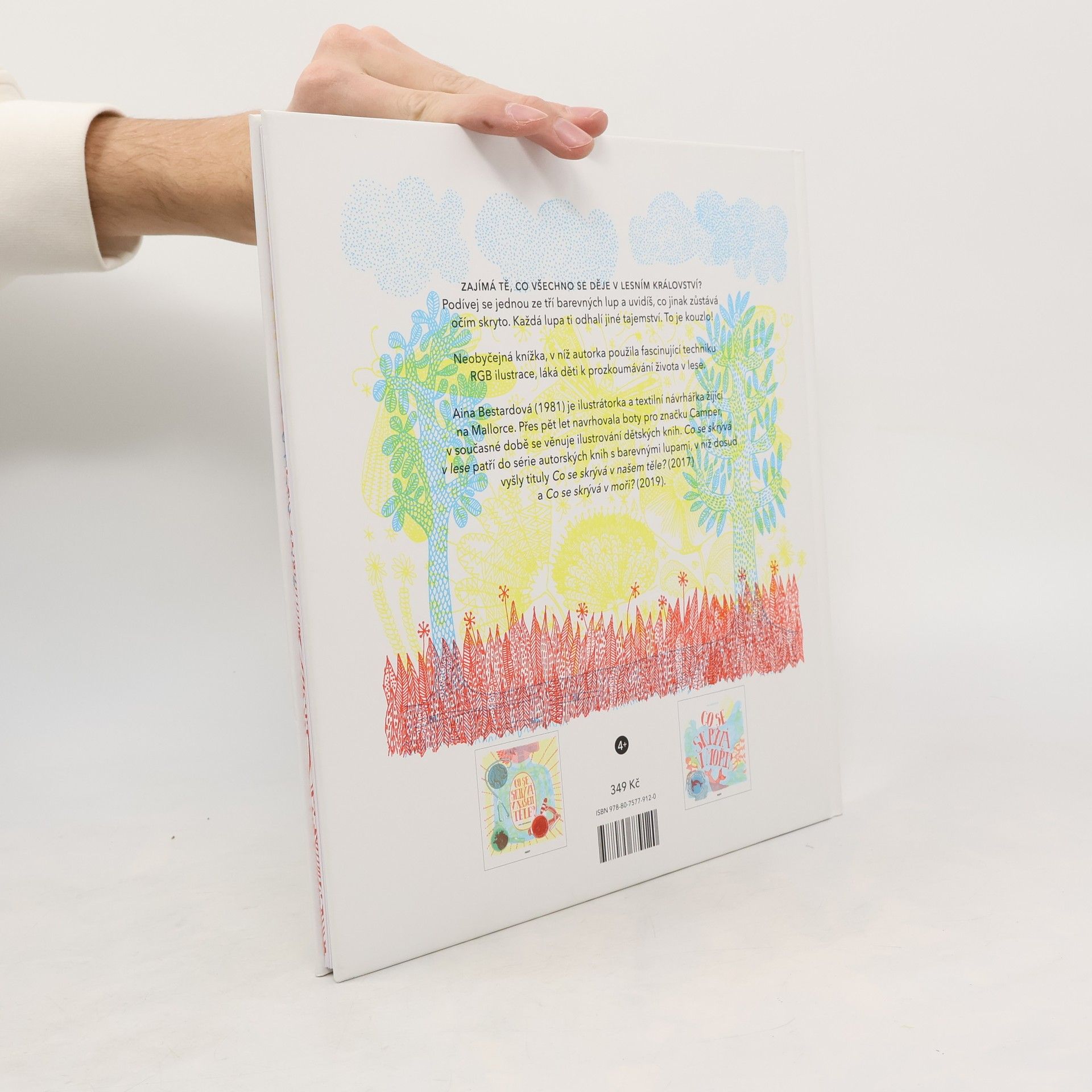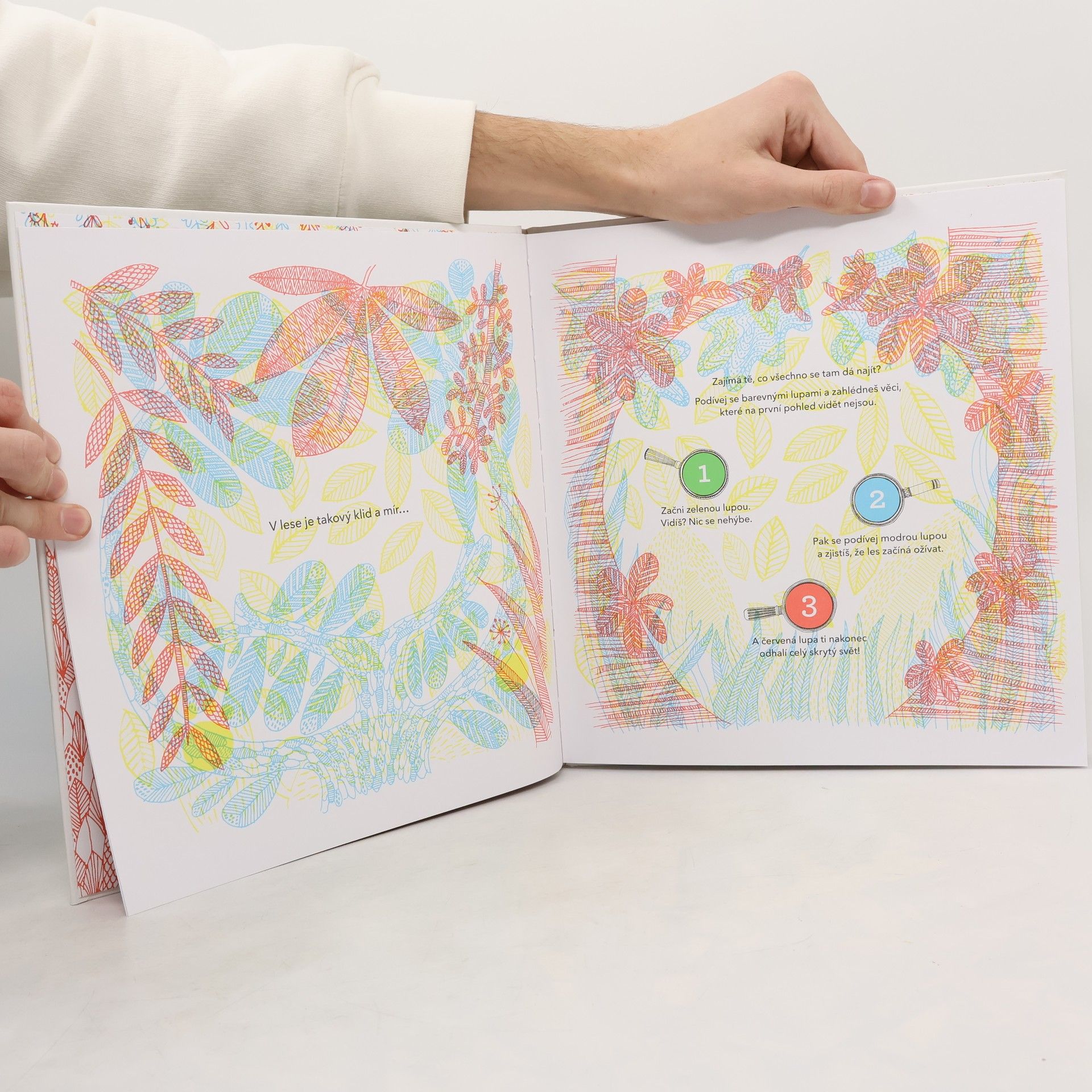 Kouzelné lupy odhalují tajemství ukrytá v jemných kresbách Ainy Bestardové. Zajímá tě, co se děje pod mořskou hladinou? A chceš vědět, co všechno se odehrává v lesním království? Podívej se přes jednu ze tří barevných lup! Díky nim uvidíš, co jinak zůstává očím skryto. Červená, modrá, zelená — každá barva odhalí jiné tajemství a láká k prozkoumávání života v lese nebo v podmořském světě.