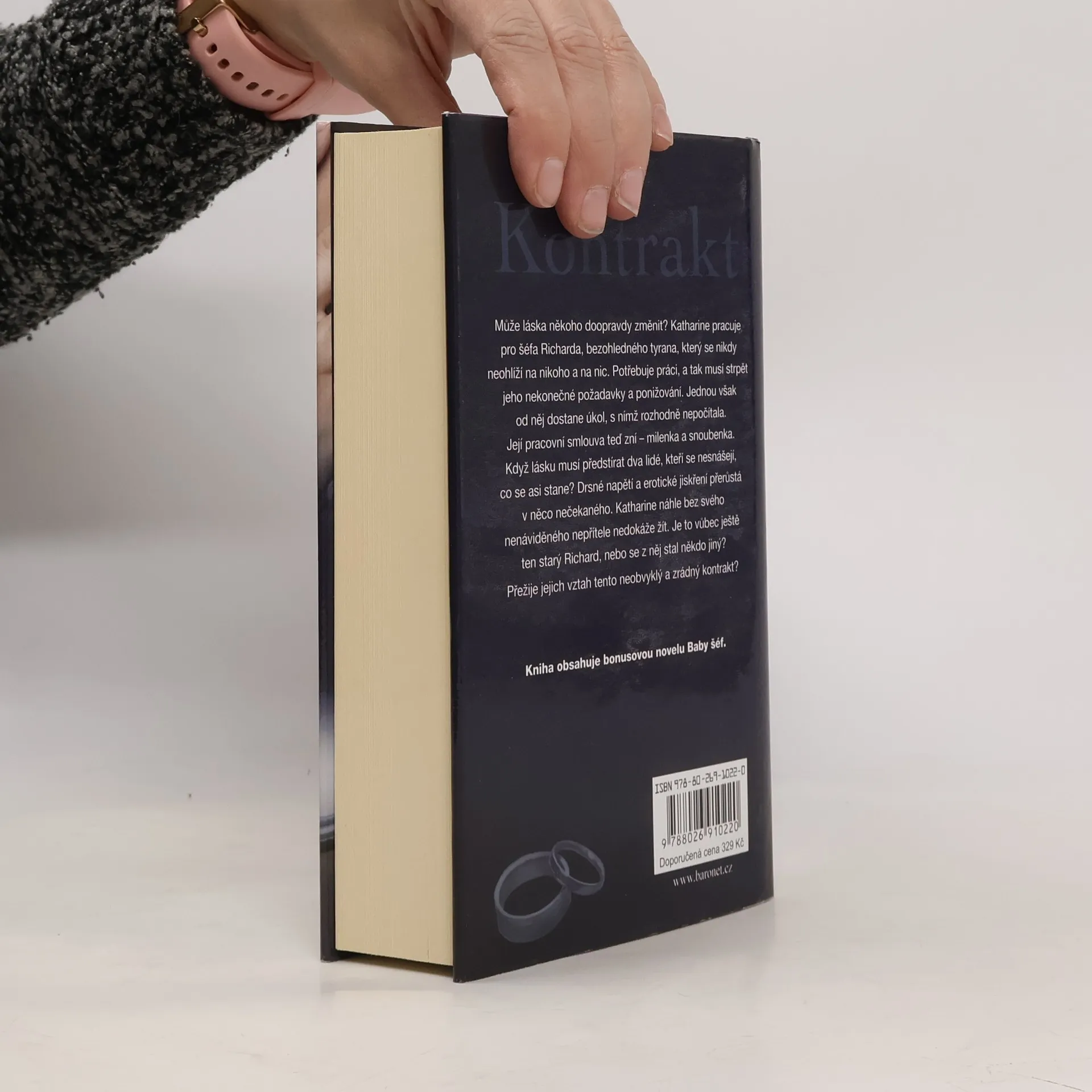 Může láska někoho doopravdy změnit? Katharine pracuje pro šéfa Richarda, bezohledného tyrana, který se nikdy neohlíží na nikoho a na nic. Potřebuje práci, a tak musí strpět jeho nekonečné požadavky a ponižování. Jednou však od něj dostane úkol, s nímž rozhodně nepočítala. Její pracovní smlouva teď zní – milenka a snoubenka. Když lásku musí předstírat dva lidé, kteří se nesnášejí, co se asi stane? Drsné napětí a erotické jiskření přerůstá do něčeho nečekaného. Katharine náhle bez svého nenáviděného nepřítele nedokáže žít. Je to vůbec ještě ten starý Richard, nebo se z něj stal někdo jiný? Přežije jejich vztah tento neobvyklý a zrádný kontrakt? Kniha obsahuje bonusovou novelu Baby šéf.