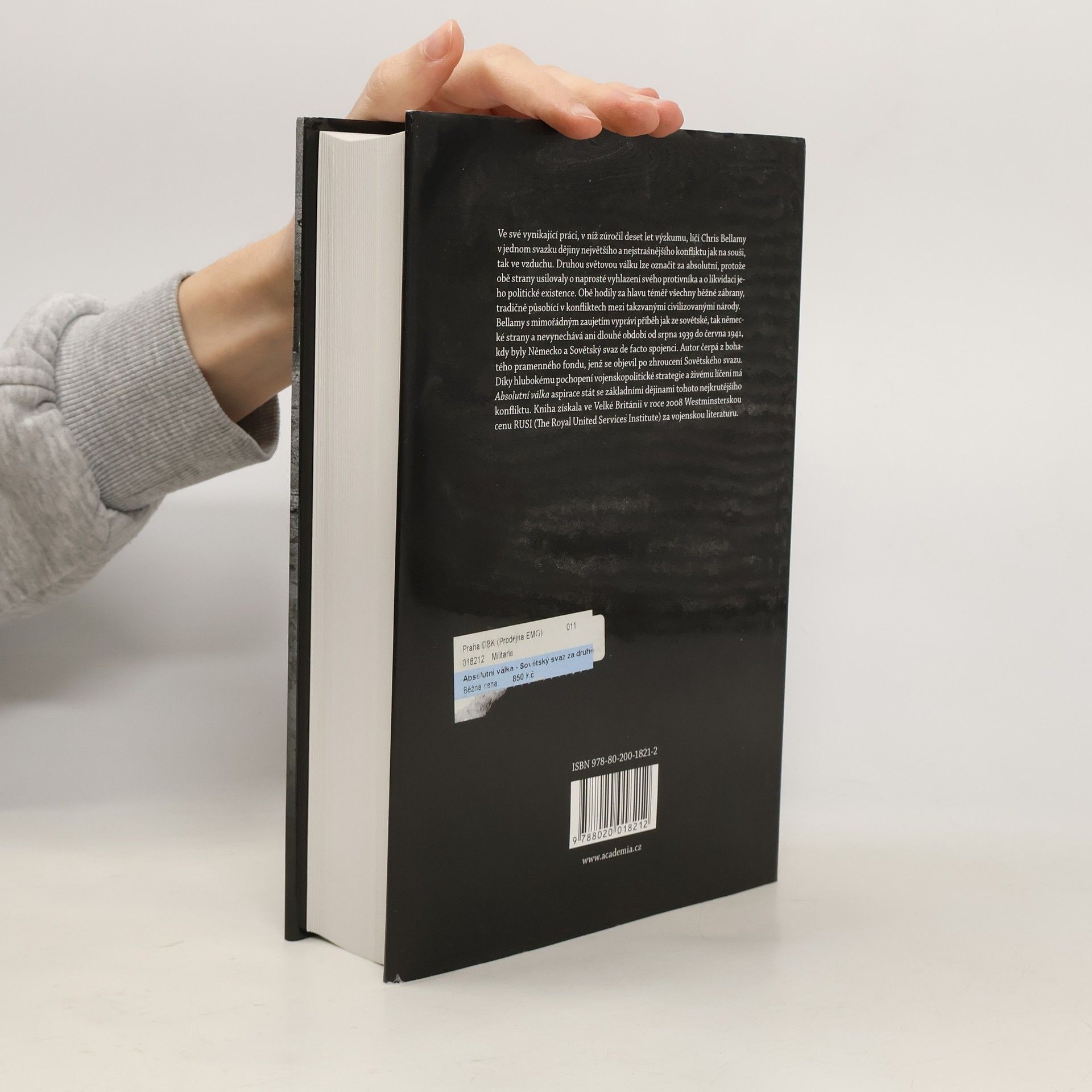 Ve své vynikající práci, v níž zúročil deset let výzkumu, líčí Chris Bellamy v jednom svazku dějiny největšího a nejstrašnějšího konfliktu jak na souši, tak ve vzduchu v dějinách. Druhou světovou válku lze označit za absolutní, protože obě strany usilovaly o naprosté vyhlazení svého protivníka a o likvidaci jeho politické existence. Obě hodily za hlavu téměř všechny běžné zábrany, tradičně působící v konfliktech mezi takzvanými civilizovanými národy. Bellamy s mimořádným úsilím vypráví příběh jak ze sovětské, tak německé strany a nevynechává ani dlouhé období od srpna 1939 do června 1941, kdy byly Německo a Sovětský svaz spojenci. Autor čerpá z bohatého pramenného fondu, jenž se objevil po zhroucení Sovětského svazu. Díky hlubokému pochopení vojenskopolitické strategie a živému líčení má Absolutní válka aspirace stát se základními dějinami tohoto nejkrutějšího konfliktu. Kniha získala ve Velké Británii v roce 2008 Westminsterskou cenu RUSI (The Royal United Services Institute) za vojenskou literaturu.