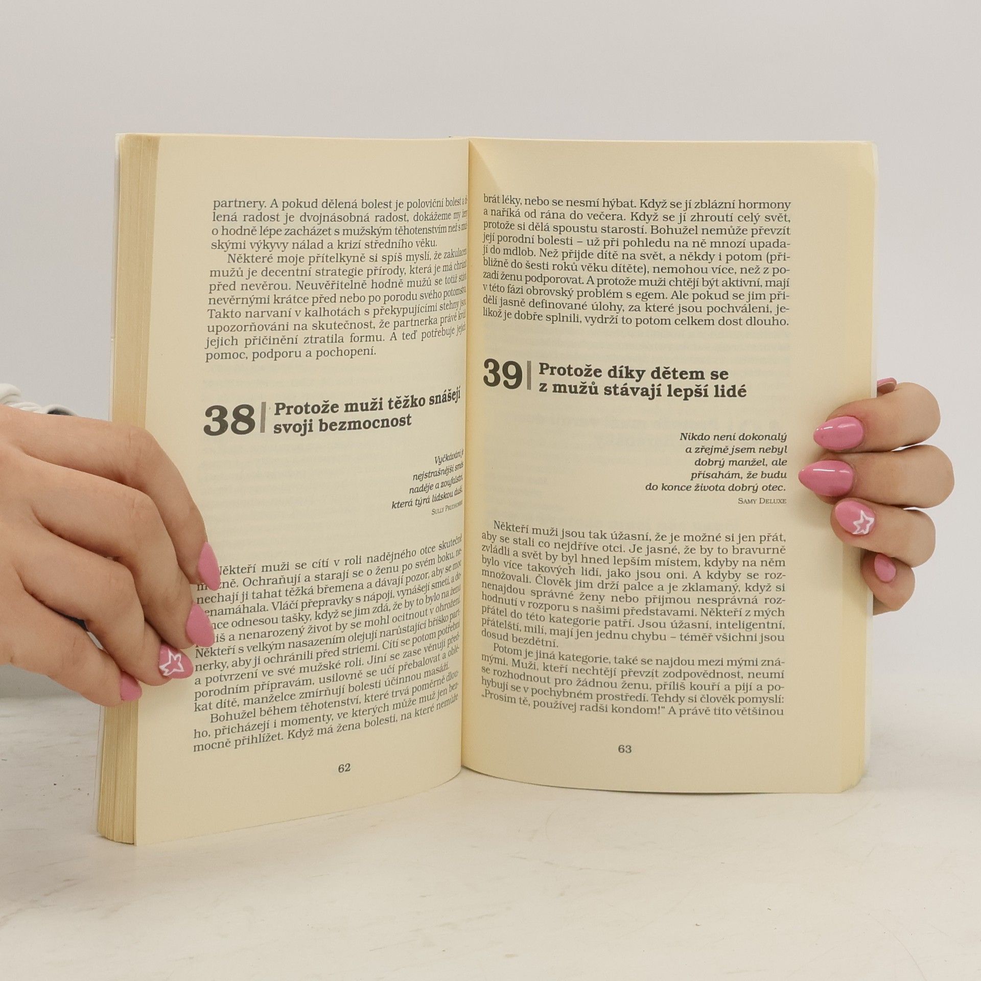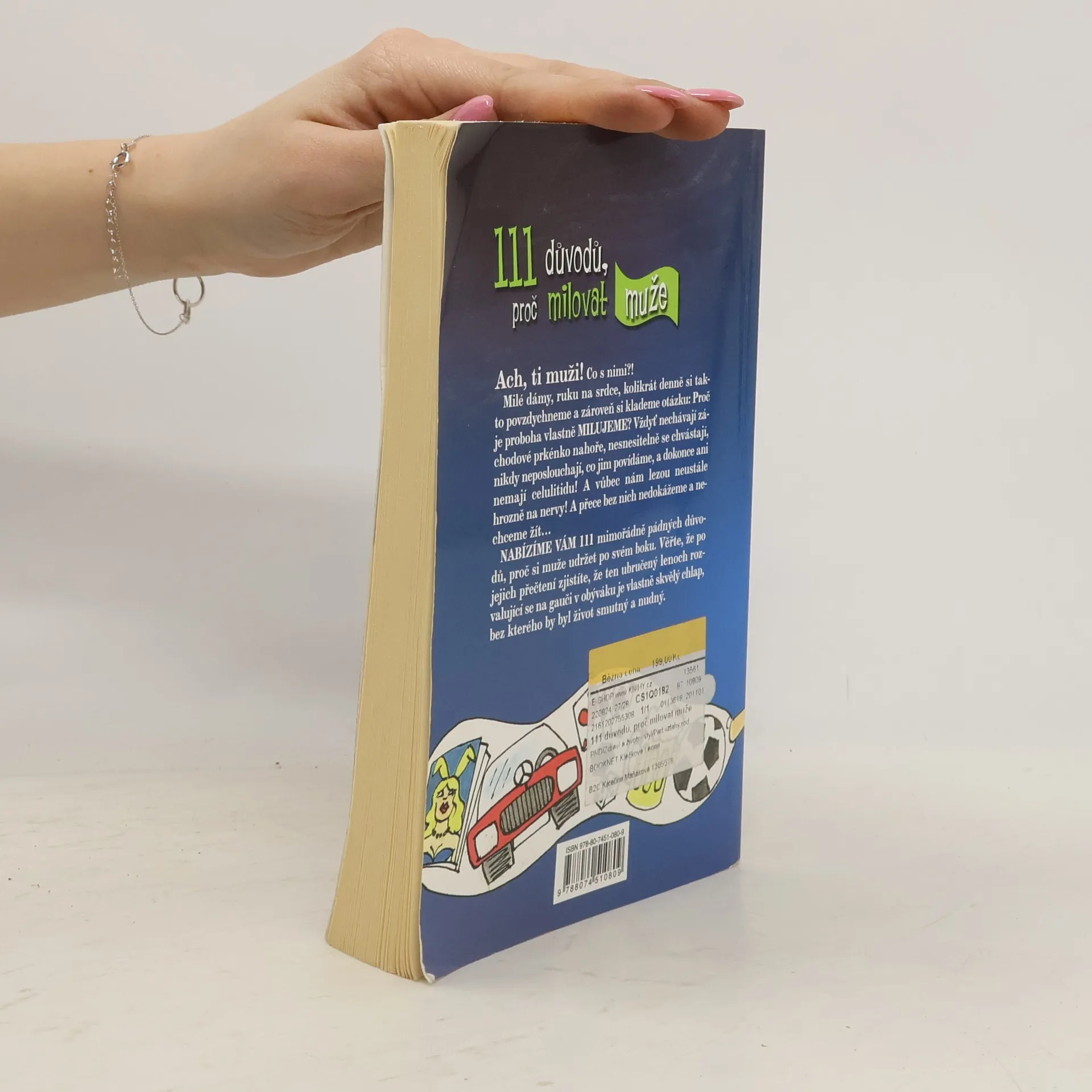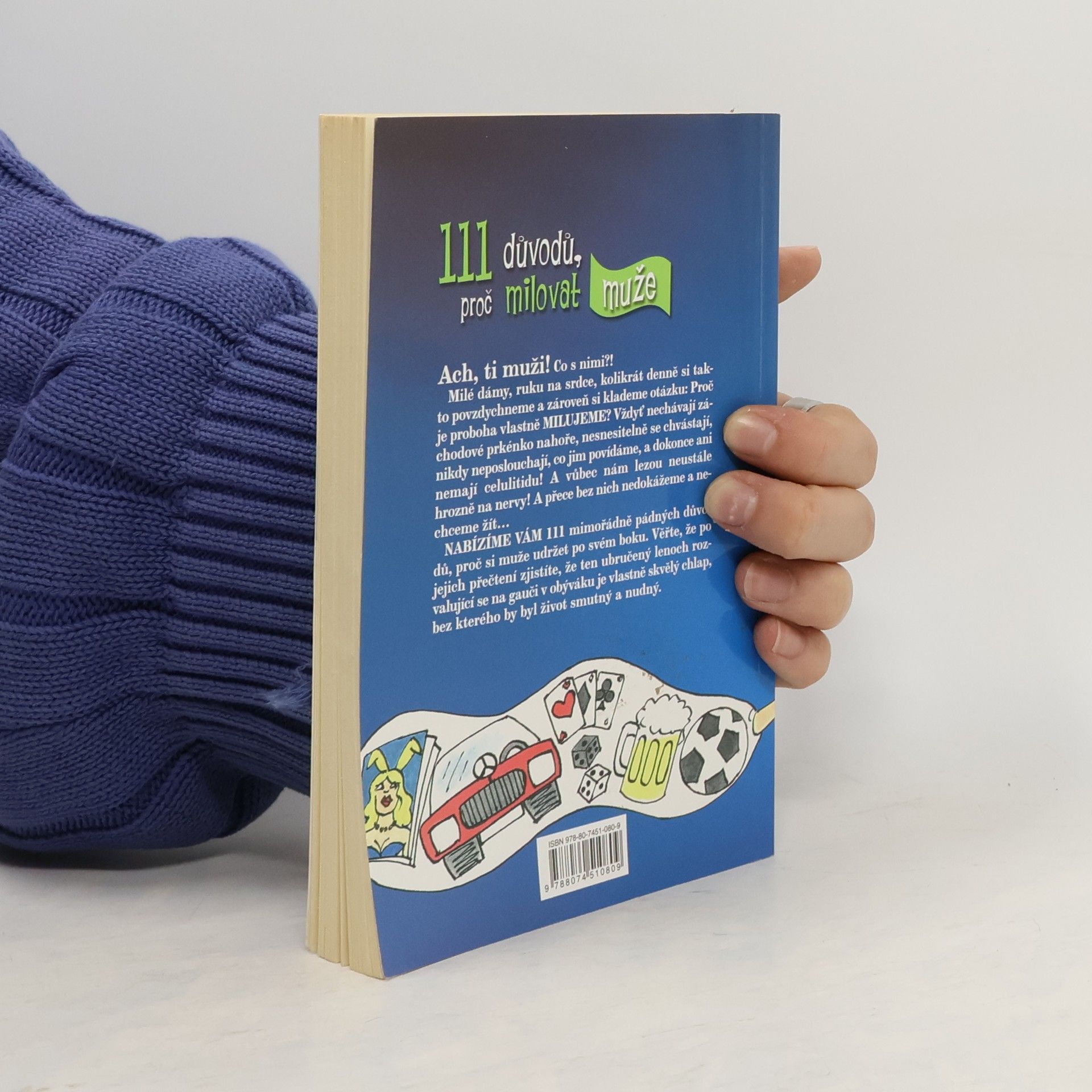 Ach,ti muži! co s nimi?! Milé dámy,ruku na srdce.kolikrát denně si takto povzdychneme a zároveň si klademe otázku:Proč je proboha vlastně MILUJEME? Vždyť nechávají záchodové prkénko nahoře,nesnesitelně se chvástají,nikdy neposlouchají,co jim povídáme,a dokonce ani nemají celulitidu!A vůbec nám lezou neustále hrozně na nervy!A přece bez nich nedokážeme žít... NABÍZÍME VÁM 111 mimořádně pádných důvodů,proč si udržet muže po svém boku.Věřte,že po jejich přečtení zjistíte,že ten ubručený lenoch rozvalující se na gauči v obýváku je vlastně skvělý chlap,bez kterého by byl život smutný a nudný.
