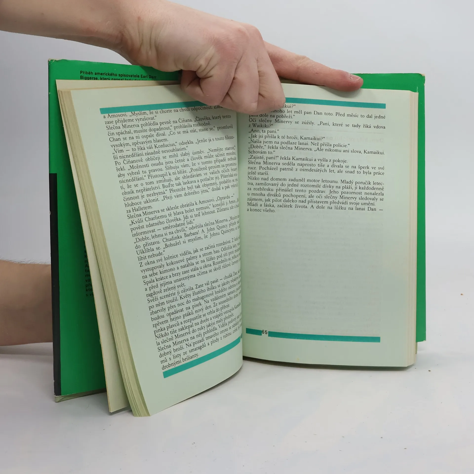 Když je ve svém domě nedaleko mořského pobřeží zavražděn jeden z nejbohatších mužů ostrova, vedou stopy k řadě podezřelých, kteří s ním měli nevyřízené účty. A tehdy uvádí autor na scénu detektiva místní policie Charlieho Chana, moudrého rozšafného muže, který se vyjadřuje svéráznou květnatou angličtinou, jedná vždy se svrchovanou zdvořilostí, ale má skvělou intuici a neúnavnou vytrvalost. V pátrání mu pomáhá sympatický, trochu naivní mladý Američan z Bostonu, který přijel na Havaj jen nakrátko z pověření své rodiny, ale podobně jako už mnozí návštěvníci podlehl kouzlu exotického ostrova. Pátráni po pachateli je výtečně rozehráno, ač zprvu začíná jen několika málo stopami. Nevynechá jediného z podezřelých a neopomine jediný motiv vraždy, od starých neodčiněných vin až po lačnost po majetku.