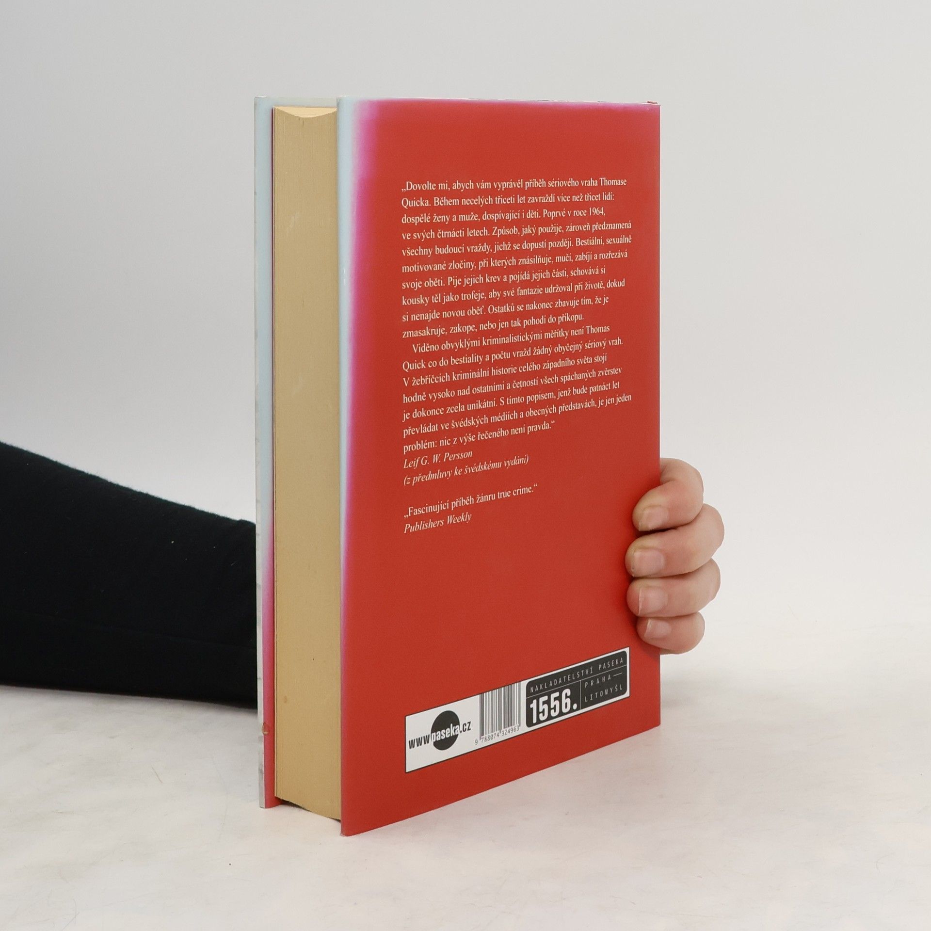 Skutečný případ Thomase Quicka. Odsouzen za osm vražd, dalších pětadvacet přiznání k soudu nedospělo. Thomase Quicka znají média jako švédského Hannibala Lectera, zločince, jehož hrůzné činy přesahují běžnou představivost. Pozadí jeho příběhu je však spletitější a překvapivější, než se zdá. Autor knihy se s nejnebezpečnějším švédským sériovým vrahem setkal poprvé roku 2008 v nemocnici v Säteru a během čtyř let prozkoumal každý detail policejního vyšetřování a soudního procesu. Pečlivá analýza policejních videonahrávek, záznamů z výslechů i soudních stání, lékařských materiálů a zápisků policejních vyšetřovatelů, včetně těch dosud utajovaných, jej přivedla k šokujícímu zjištění – v případě Stura Bergvalla, jak se odsouzenec ve skutečnosti jmenuje, policisté, lékaři, právníci i soudní znalci účelově manipulovali s fakty. Råstamův příběh o tom, jak lze z nevinného, psychicky nemocného člověka vytvořit sériového vraha, je reálný thriller a kritika policejního a právního systému, který selhal.