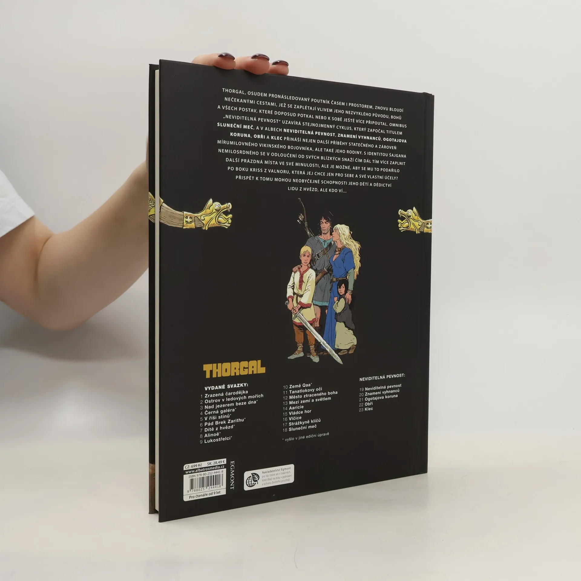 Thorgal, osudem pronásledovaný poutník časem i prostorem, znovu bloudí nečekanými cestami, jež se zaplétají vlivem jeho nezvyklého původu, bohů a všech postav, které doposud potkal nebo k sobě ještě více připoutal. Omnibus „Neviditelná pevnost“ uzavírá stejnojmenný cyklus, který započal titulem Sluneční meč, a v albech Neviditelná pevnost, Znamení vyhnanců, Ogotajova koruna, Obři a Klec přináší nejen další příběhy statečného a zároveň mírumilovného vikinského bojovníka, ale také jeho rodiny. S identitou Šajgana Nemilosrdného se v odloučení od svých blízkých snaží čím dál tím více zaplnit další prázdná místa ve své minulosti, ale je možné, aby se mu to podařilo po boku Kriss z Valnoru, která jej chce jen pro sebe a své vlastní účely? Přispět k tomu mohou neobyčejné schopnosti jeho dětí a dědictví lidu z hvězd, ale kdo ví…