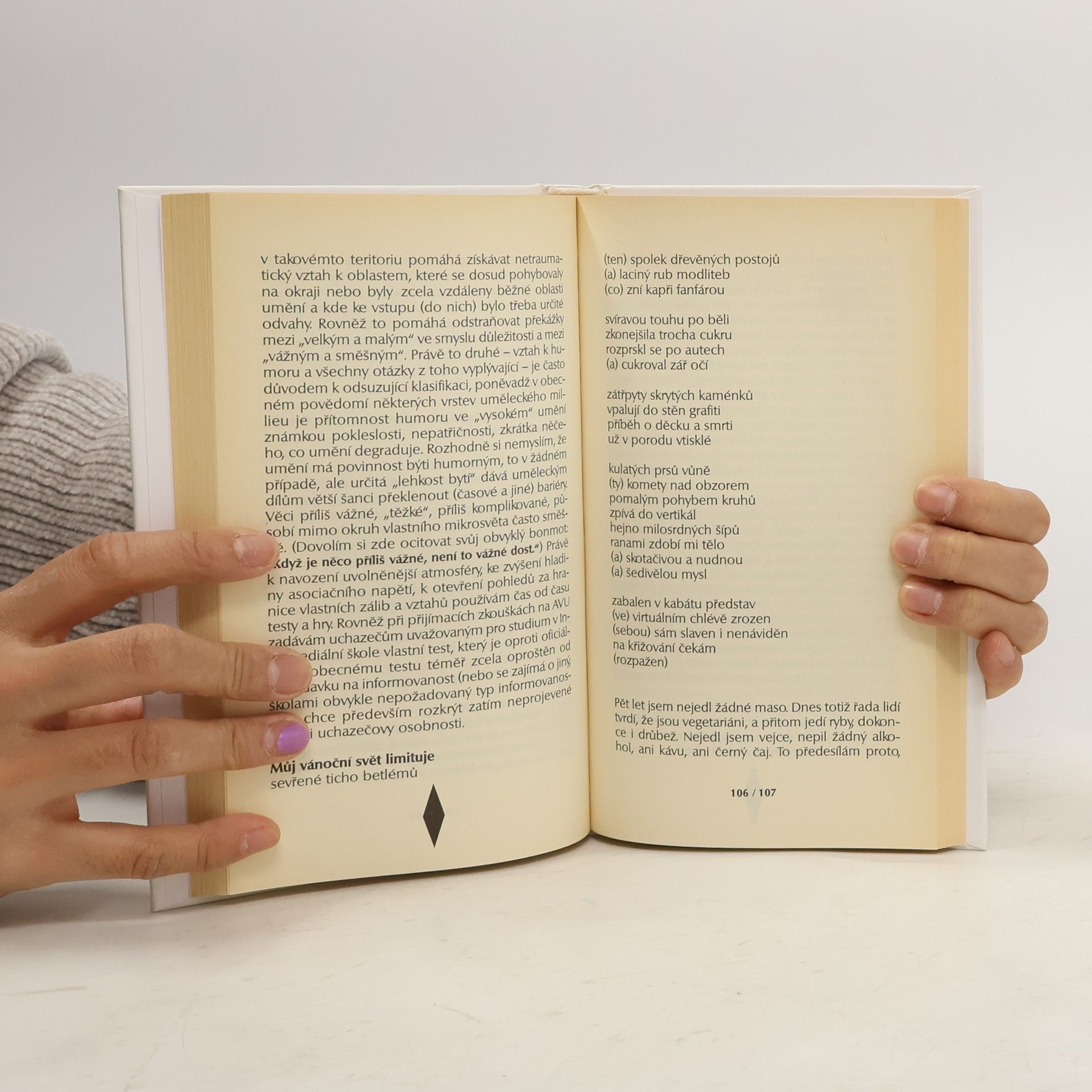 Kritické postoje a názory na život, definice nebo spíše redefinice sebe sama. Kniha autorských textů Milana Knížáka(1996-1999) obsahuje proud kritických úvah, komentářů, názorů, glos a postojů a otevřenost všem tématům, ke kterým je potřeba se v současnosti vyjádřit (platnost morálních kodexů, budoucnost, význam a působení uměleckého díla, postavení umělce, komentáře ke knihám, citáty, básně, názory na politiku, výpovědi o vlastních politických a společensko-kulturních aktivitách, názory na výuku, úvahy o pojmu autenticity a originality v současném světě...). Odpovědi na otázky osvětlující jeho "postoje plně otevřené všemu, co život přináší a zároveň úcta k uzavřenosti". Básně a četné citáty člení spektrum témat.