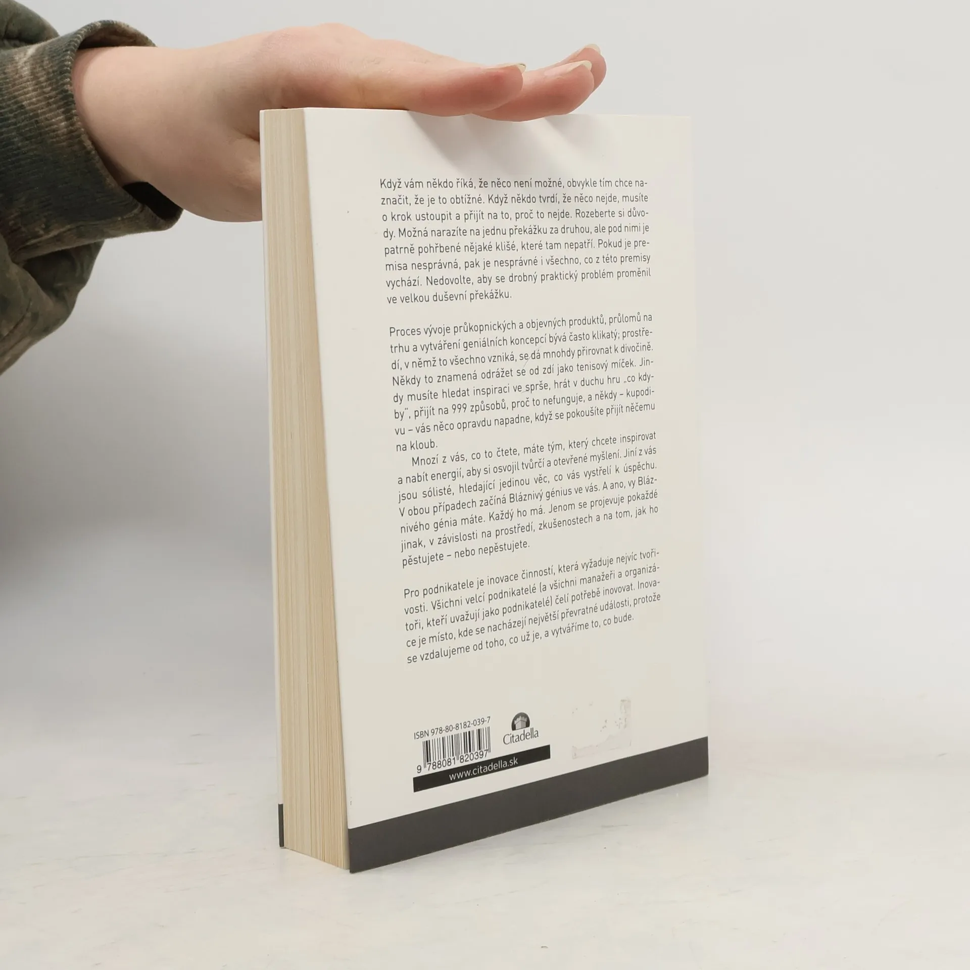 Když někdo tvrdí, že něco není možné, obvykle tím naznačuje, že je to obtížné. Je důležité ustoupit a zjistit, proč to nejde, a rozebrat důvody. Můžete narazit na překážky, ale pod nimi se často skrývá klišé, které tam nepatří. Pokud je premisa nesprávná, pak i vše, co z ní vychází, je chybné. Nedovolte, aby se malý praktický problém stal velkou duševní překážkou. Vývoj průkopnických produktů a tržních průlomů je často klikatý a prostředí, v němž vznikají, připomíná divočinu. Někdy je třeba se odrážet od zdí, jindy hledat inspiraci v nečekaných chvílích. Hraní si s myšlenkami „co kdyby“ může vést k objevům, i když narazíte na mnoho důvodů, proč něco nefunguje. Mnozí čtenáři mají tým, který chtějí inspirovat k tvůrčímu myšlení, jiní hledají klíč k osobnímu úspěchu. V obou případech je důležité objevit Bláznivého génia v sobě, který má každý z nás. Pro podnikatele je inovace činností vyžadující nejvíce kreativity. Všichni velcí podnikatelé a ti, kdo myslí jako podnikatelé, čelí potřebě inovovat. Inovace je klíčem k převratným událostem, které nás posouvají od toho, co je, k tomu, co bude.