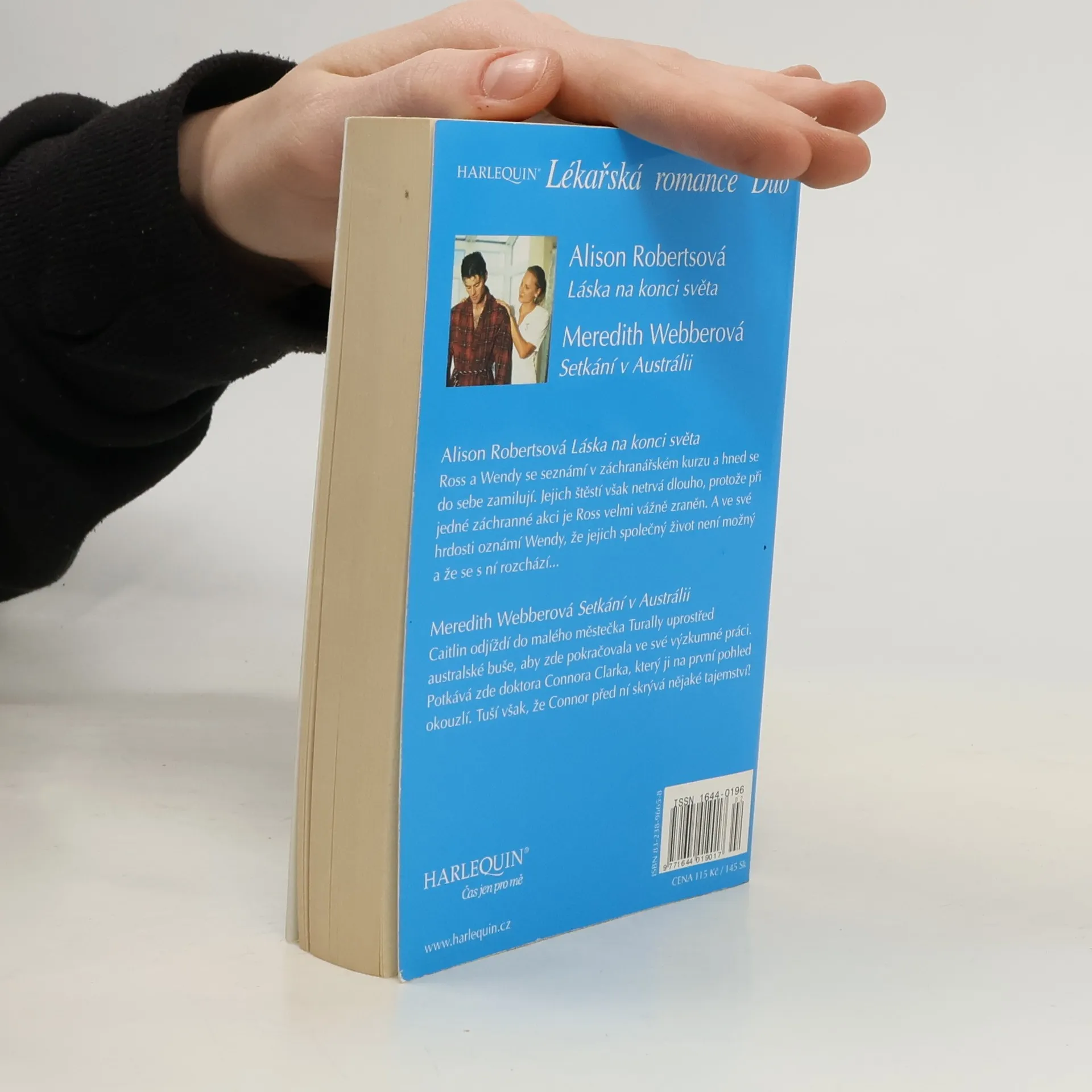 Láska na konci světa - Alison Roberts Ross a Wendy se seznámí v záchranářském kurzu a hned se do sebe zamilují. Jejich štěstí však netrvá dlouho, protože při jedné záchranné akci je Ross velmi vážně zraněn. A ve své hrdosti Wendy oznámí, že jejich společný život není možný a že se s ní rozchází... (minisérie Záchranáři) Setkání v Austrálii - Meredith Webber Caitlin odjíždí do malého městečka Turally uprostřed australské buše, aby zde pokračovala ve své výzkumné práci. Potkává zde doktora Connora Clarka, který ji na první pohled okouzlí. Tuší však, že Connor před ní skrývá nějaké tajemství!