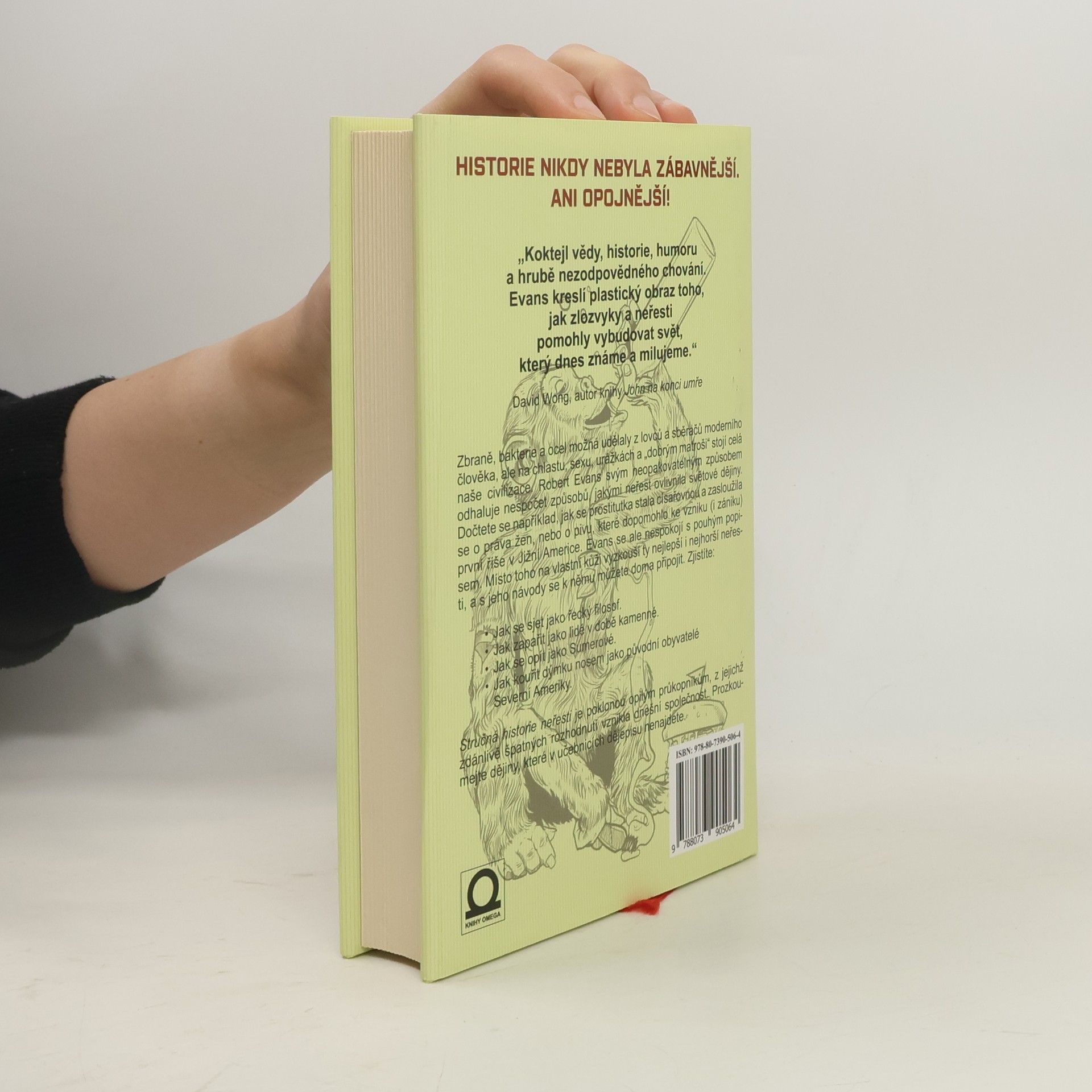 Historie nikdy nebyla tak zábavná a opojná. Zbraně, ocel a bakterie udělali z nás, pradávných lovců a sběračů, moderního člověka, ale na chlastu, sexu, „dobrym matroši“ a sprosťárnách stojí naše civilizace. Robert Evans svým neopakovatelným způsobem odhaluje a popisuje události, o kterých se v učebnicích dějepisu nedočtete. Například příběh prostitutky, ze které se stala císařovna a vymohla ženám jedno z nejdůležitějších práv vůbec – právo pít pivo, což napomohlo ke zhroucení první říše v Jižní Americe. Dále se naučíte: kouřit dýmku nosem jako původní obyvatelé Severní Ameriky, zahulit jako řečtí filosofové, opít se jako Suméřané nebo se odvázat jako naši předci z doby kamenné. Zahřešíte se starými vyznavači Islámu, přečtete si první bulvární plátek z dob starověkého Řecka a seznámíte se s podivuhodnou historií sexuálního byznysu.