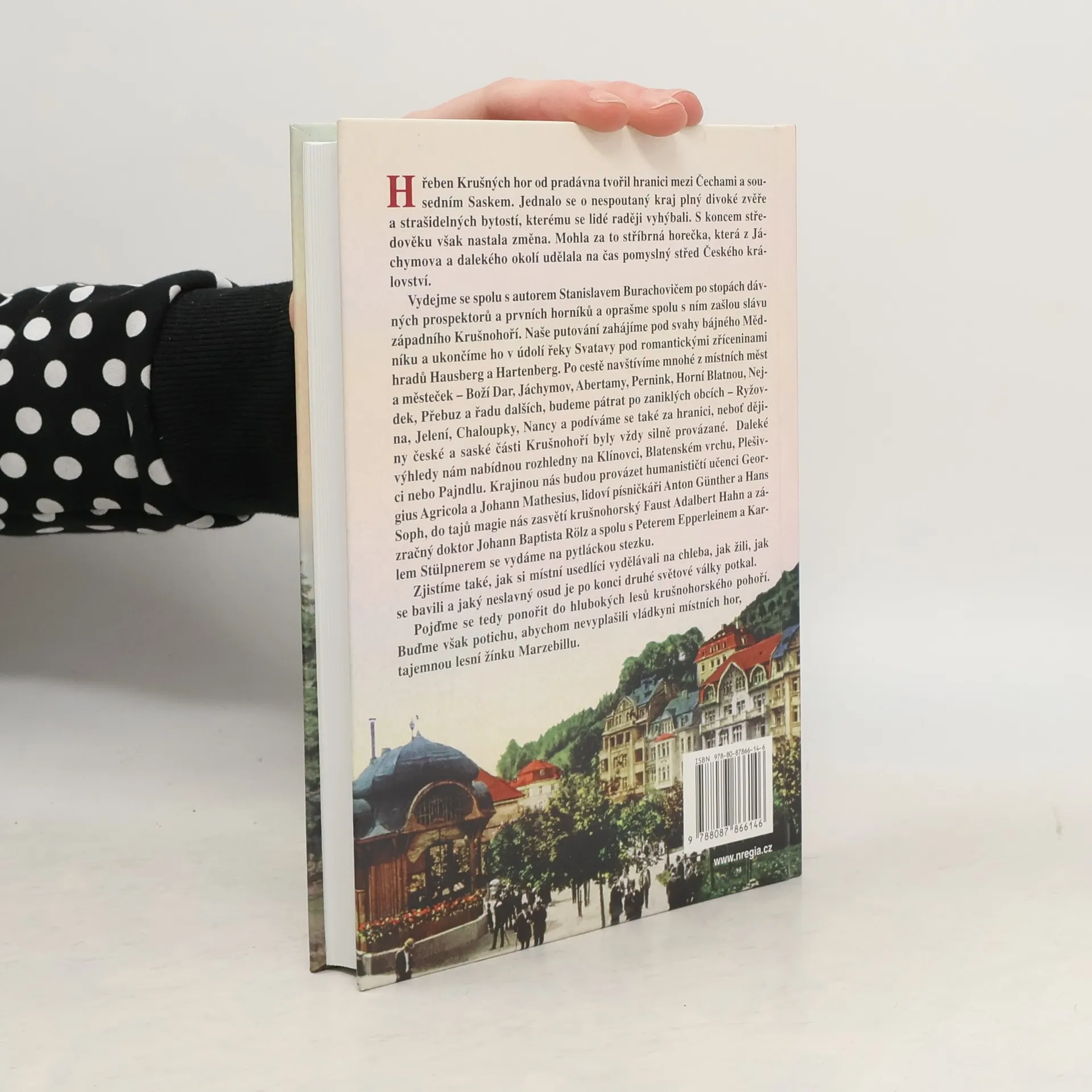 Hřeben Krušných hor od pradávna tvořil hranici mezi Čechami a Saskem, byl to kraj plný divoké zvěře a strašidelných bytostí, kterému se lidé raději vyhýbali. S koncem středověku však nastala změna, způsobená stříbrnou horečkou, která učinila z Jáchymova pomyslný střed Českého království. Autor Stanislav Burachovič nás zve na cestu po stopách dávných prospektorů a prvních horníků, abychom objevili zašlou slávu západního Krušnohoří. Naše putování začíná pod svahy Mědníku a končí v údolí řeky Svatavy pod romantickými zříceninami hradů Hausberg a Hartenberg. Navštívíme města jako Boží Dar, Jáchymov, Abertamy, Pernink, Horní Blatnou a Nejdek, a prozkoumáme zaniklé obce jako Rýžovna a Jelení. Dějiny české a saské části Krušnohoří jsou silně provázané, což nás zavede i za hranice. Rozhledny na Klínovci, Blatenském vrchu a Plešivci nám nabídnou daleké výhledy. Na cestě nás provázejí historické postavy, lidoví písničkáři a tajemní léčitelé. Objevíme, jak místní obyvatelé žili, jak se bavili a jaký osud je potkal po druhé světové válce. Ponořme se do hlubokých lesů Krušných hor, ale buďme potichu, abychom nevyplašili vládkyni místních hor, tajemnou lesní žínku Marzebillu.