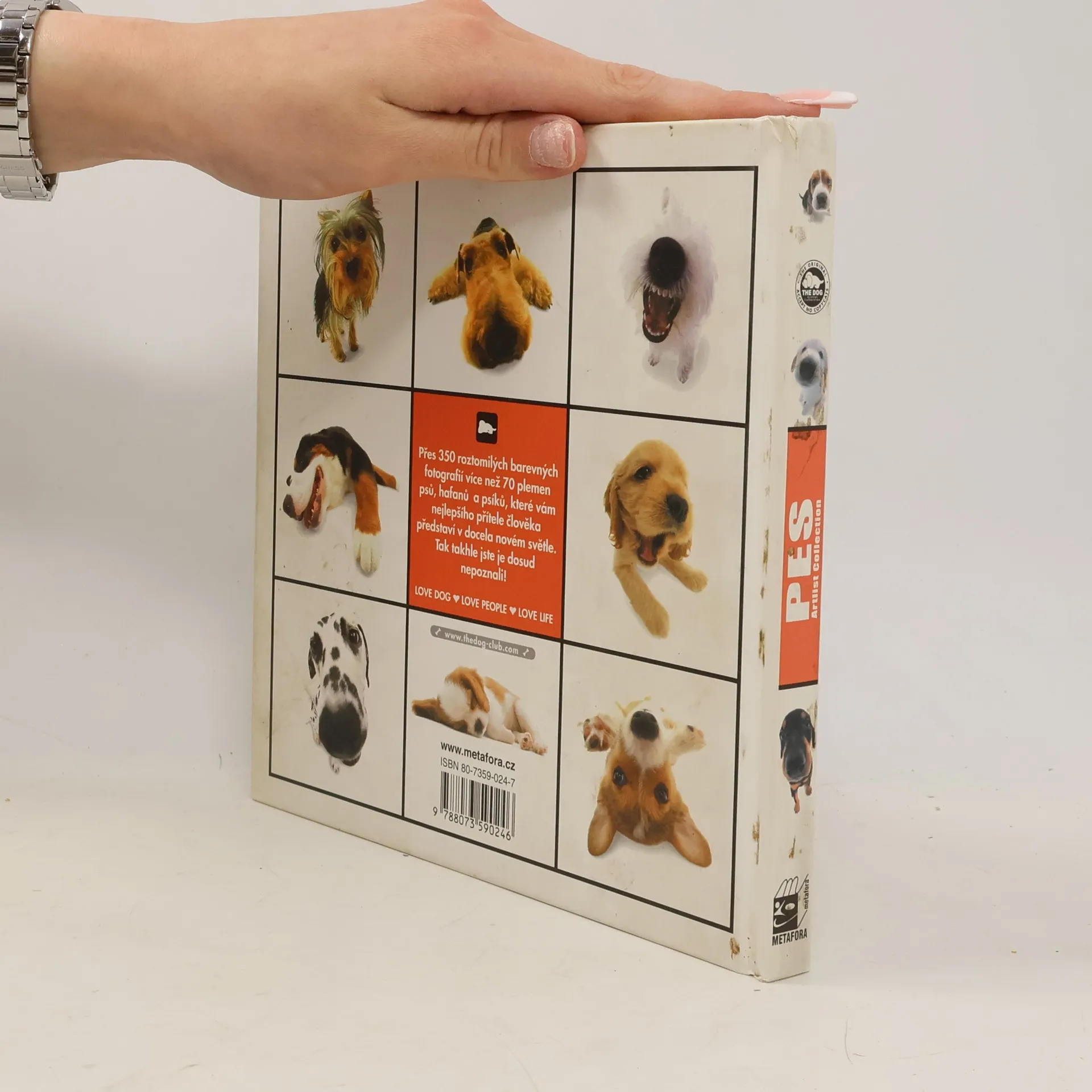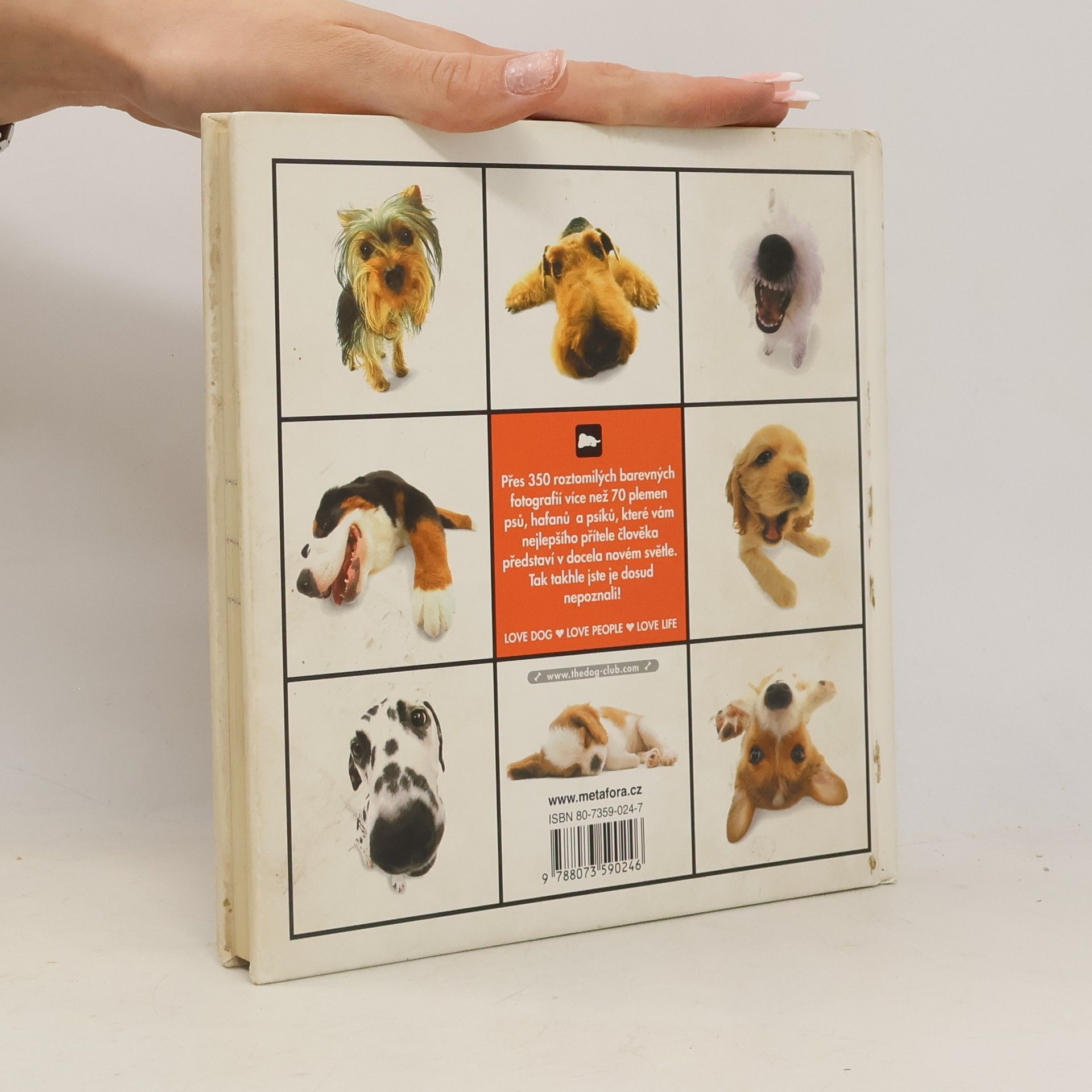Atlas psů trochu jinak... Veselé obrázky psích miláčků s vážnými informacemi o plemenech. K vyfotografování našich psích přátel se tvůrce téhle neuvěřitelné knížky rozhodl použít kulatého objektivu, tzv. rybího oka, a výsledek byl dokonalý. Ze stránek se na nás dívá množství všemožných psích postaviček a obličejů, tak jak jsme je ještě nikdy neviděli. Barvité snímky doprovází text, z něhož se dozvíme mnoho nového o každém vyobrazeném plemeni. Dočteme se, odkud pochází, k čemu se užívalo v minulosti a jak nám slouží dnes. Poučíme se o psí povaze, o úpravě zevnějšku a mnoha jiných věcech. Nechybějí ovšem ani zábavné a docela nezávazné komentáře, které spolu s veselými fotografiemi zaručeně rozesmějí i toho největšího škarohlída. Přes 350 roztomilých barevných fotografií více než 70 plemen psů, hafanů a psíků, které vám nejlepšího přítele člověka představí v docela novém světle. Tak takhle jste je dosud nepoznali!