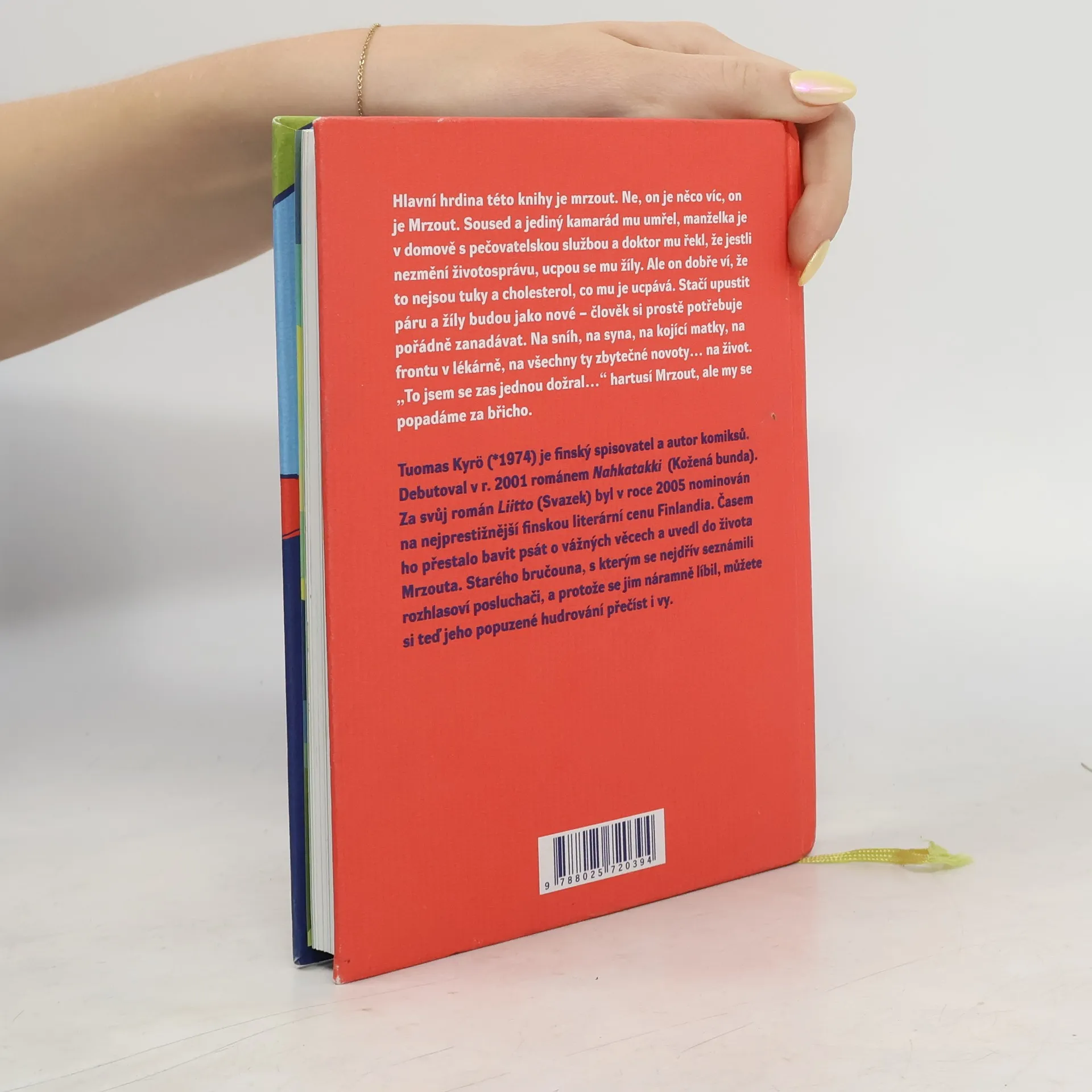 Hlavní hrdina této knihy je mrzout. Ne, on je něco víc, on je Mrzout. Soused a jediný kamarád mu umřel, manželka je v domově s pečovatelskou službou a doktor mu řekl, že jestli nezmění životosprávu, ucpou se mu žíly. Ale on dobře ví, že to nejsou tuky a cholesterol, co mu je ucpává. Stačí upustit páru a žíly budou jako nové – člověk si proste potřebuje pořádně zanadávat. Na sníh, na syna, na kojící matky, na frontu v lékárně, na všechny ty zbytečné novoty… na život. "To jsem se zas jednou dožral…" hartusí Mrzout, ale my se popadáme za břicho.