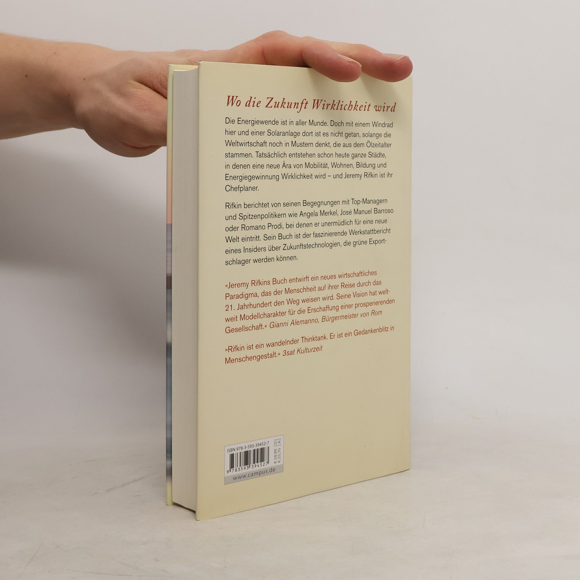 Nach den Umstürzen in der Arabischen Welt und der Atomkatastrophe von Japan steht fest: Wir brauchen eine Abkehr von fossilen Energien und mit Atomkraft ist die Wende nicht zu machen. Kanzlerin Merkel will Deutschland zum Ökostromland umbauen, doch der Ausstieg aus der Kernenergie hat seinen Preis für Bürger, Unternehmen und die Politik. Er wird die Fundamente der Gesellschaft verändern. Schon heute entstehen Tag für Tag ganze Stadtteile, in denen eine neue Ära von Mobilität, Wohnen, Bildung und Energiegewinnung Wirklichkeit wird – und Jeremy Rifkin ist ihr Chefplaner. Er berichtet von den Begegnungen mit den Topmanagern großer Konzerne wie IBM, Siemens, EnBW, Daimler und nimmt den Leser mit in die Hinterzimmer von Spitzenpolitikern wie Angela Merkel, David Cameron oder Romano Prodi, wo er unermüdlich für eine neue Welt eintritt. Sein Buch ist der faszinierende Werkstattbericht eines Insiders über Zukunftstechnologien, die grüne Exportschlager werden können.