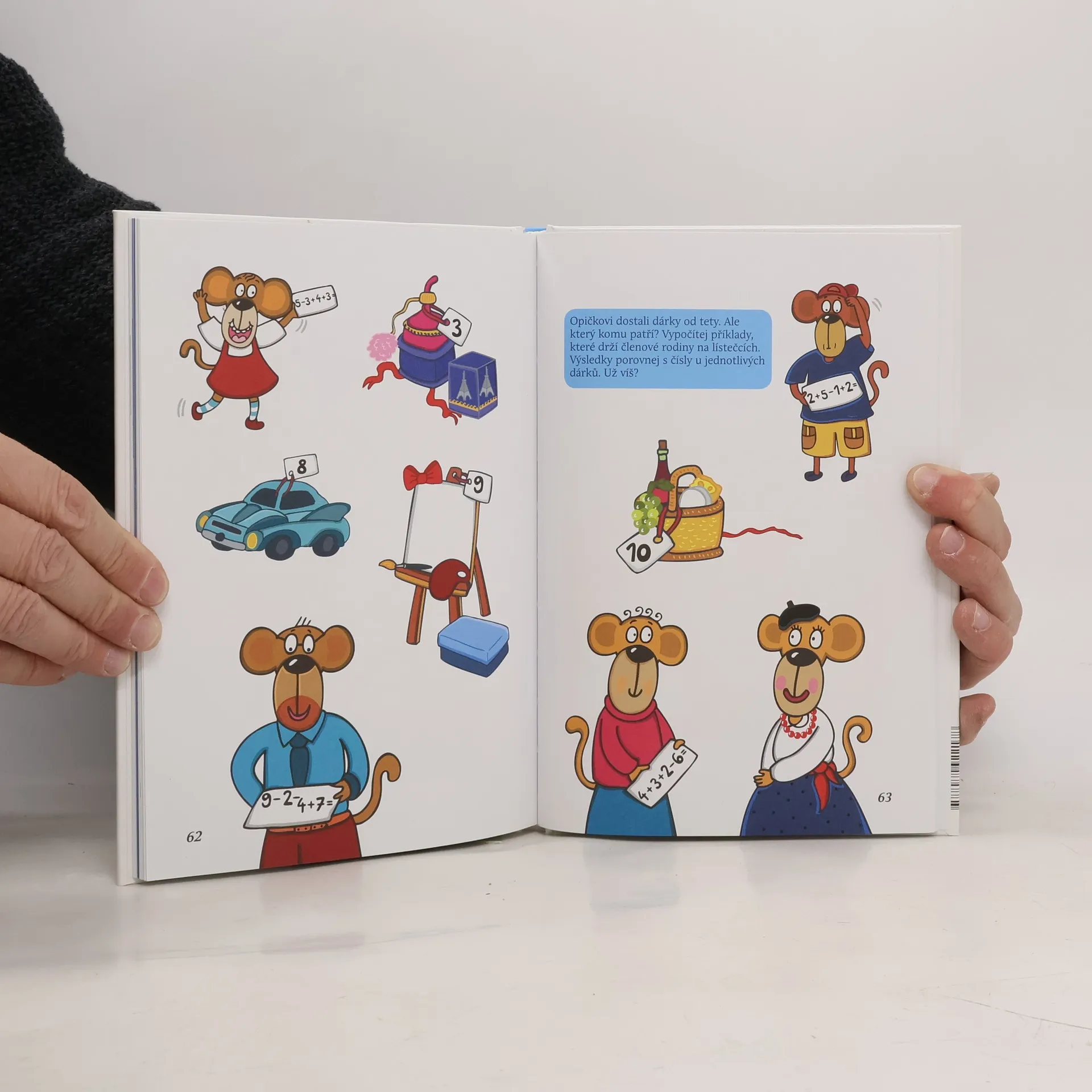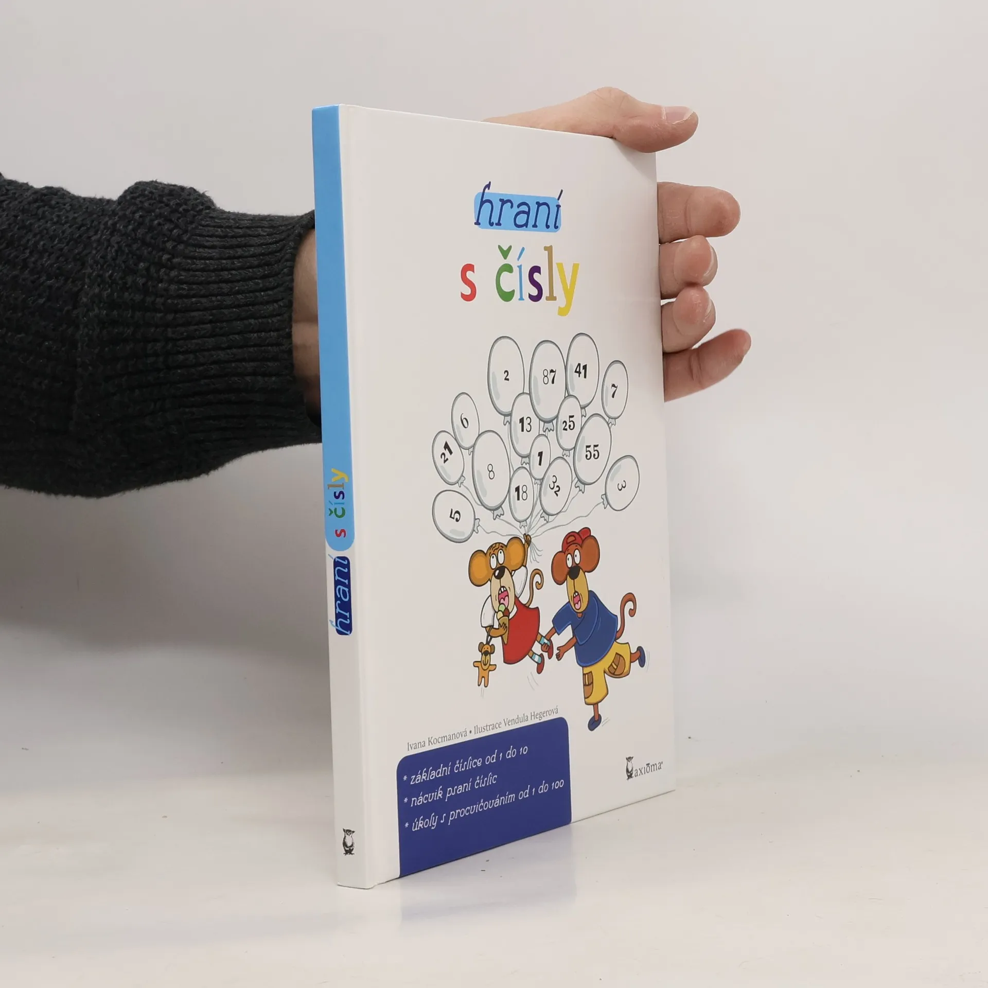 Kniha učí příjemným způsobem poznat základní číslice od 1 do 10, nácvik psaní číslic a úkoly s procvičováním