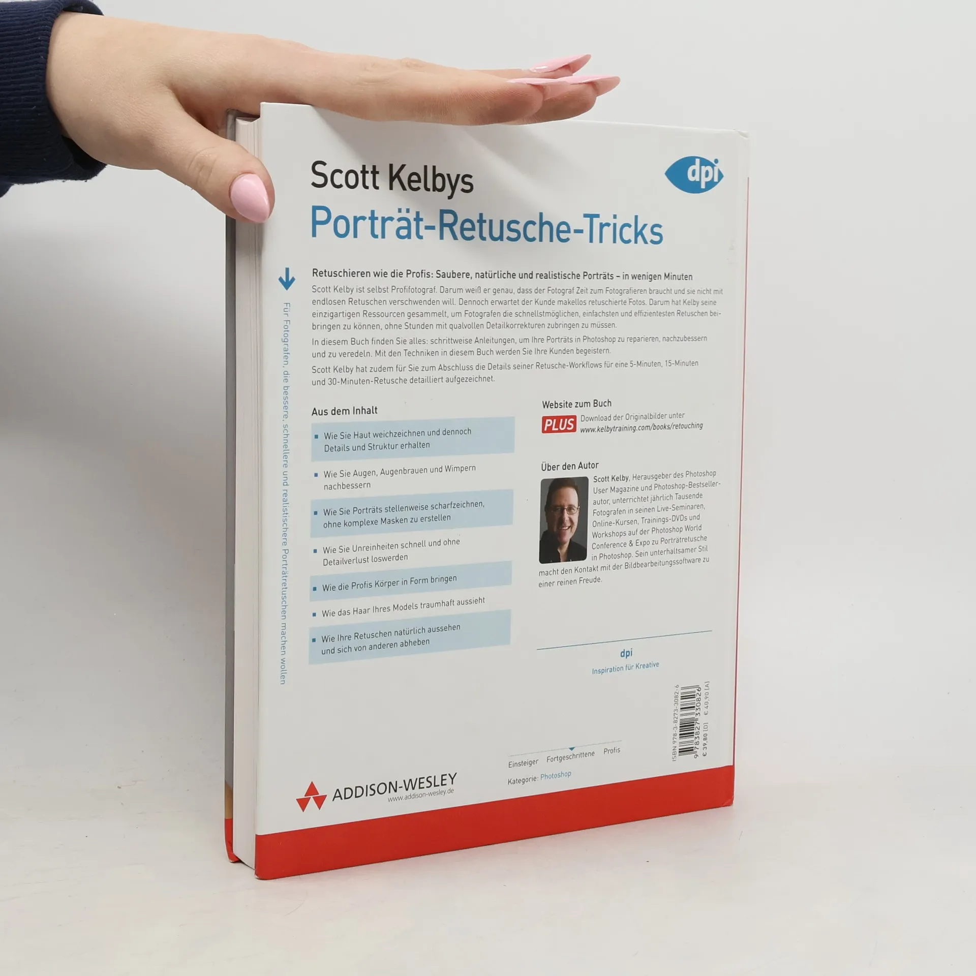 Von den Profis lernen Hier finden Sie alles, schrittweise Anleitungen um Ihre Porträts in Photoshop zu reparieren, nachzubessern und zu veredeln. Mit den Techniken in diesem Buch werden Sie Ihre Kunden begeistern. Hier erfahren Sie:* wie Sie Haut weichzeichnen und dennoch Details und Struktur erhalten* wie Sie Augen, Augenbrauen und Wimpern wunderschön nachbessern* wie Sie Porträts stellenweise scharfzeichnen, ohne komplexe Masken zu erstellen* wie Sie Unreinheiten schnell und ohne Detailverlust loswerden* wie die Profis Körper in Form bringen* wie das Haar Ihres Models traumhaft aussieht* wie Ihre Retuschen natürlich aussehen und sich von anderen abheben* wie Scott in 5, 15 und 30 Minuten Bilder retuschiert - 3 WorkflowsHier finden Sie die „Branchentricks“, die auch die führenden Fotografen bei ihren Retuschen einsetzen, um ihre Porträts professionell nachzubessern. Wenn Sie dafür bereit sind, halten Sie das richtige Buch in der Hand. Es wird Ihre Retusche radikal umkrempeln, Sie erhalten die besten und natürlichsten Porträts, die Sie je gesehen haben.