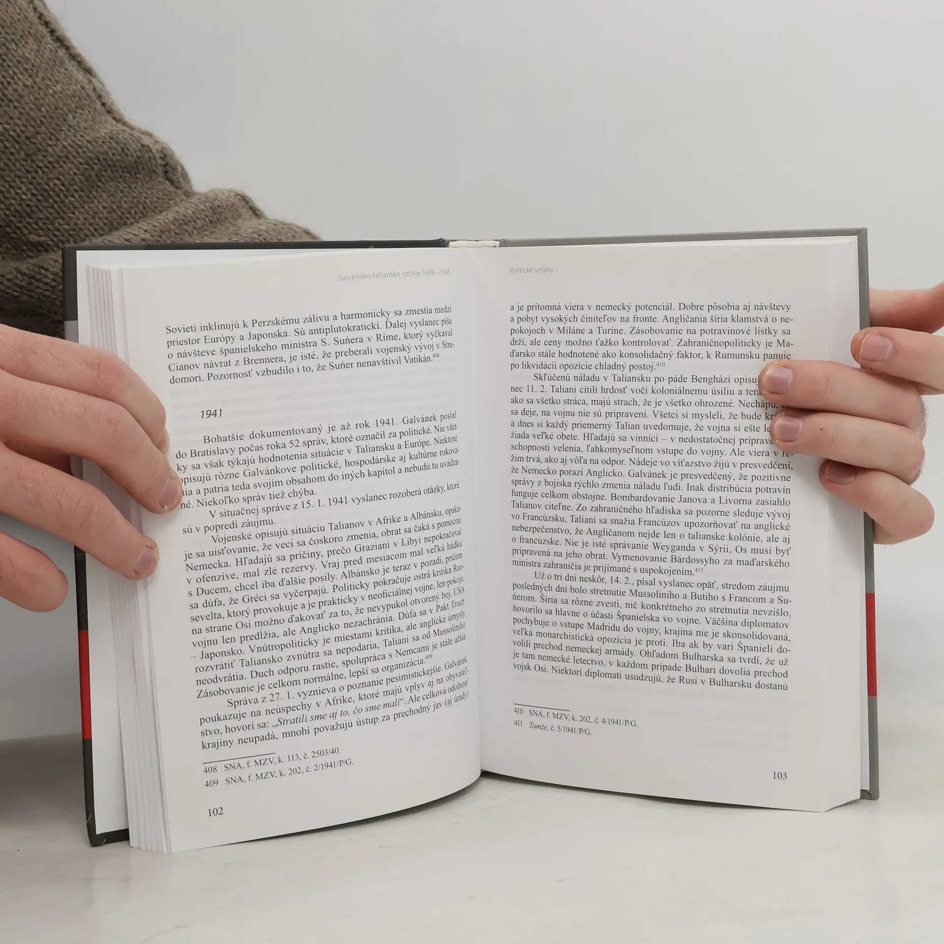 Publikácia českého historika Petra Kubíka sa zaoberá hlavnými oblasťami spolupráce dvoch štátov stojacich na jednej strane frontovej línie počas druhej svetovej vojny. Okrem politických, obchodných a vojenských vzťahov približuje aj kultúrne a športové kontakty. Základom práce je autorova dizertácia, ktorou absolvoval na Univerzite Karlovej v Prahe, a pri výskume čerpal zo zdrojov slovenských, českých aj talianskych archívov. V knihe venuje pozornosť aj obrazu oboch štátov v domácej tlači, či podmienkam a možnostiam cestovania mezi nimi. Publikáciu dopĺňajú prílohy, napr. ukážky dobových diplomatických zpráv a biografické profily vtedajších slovenských diplomatov.