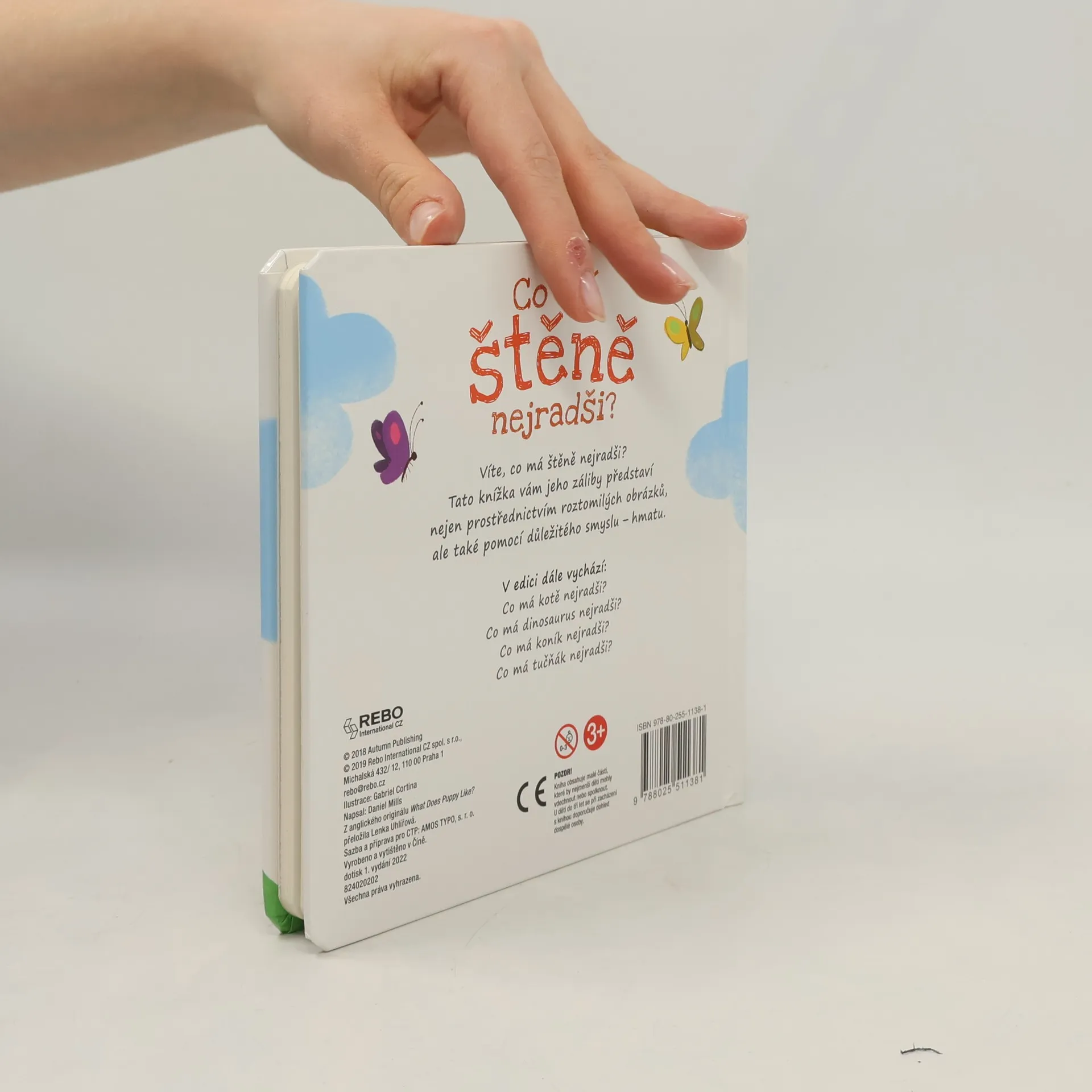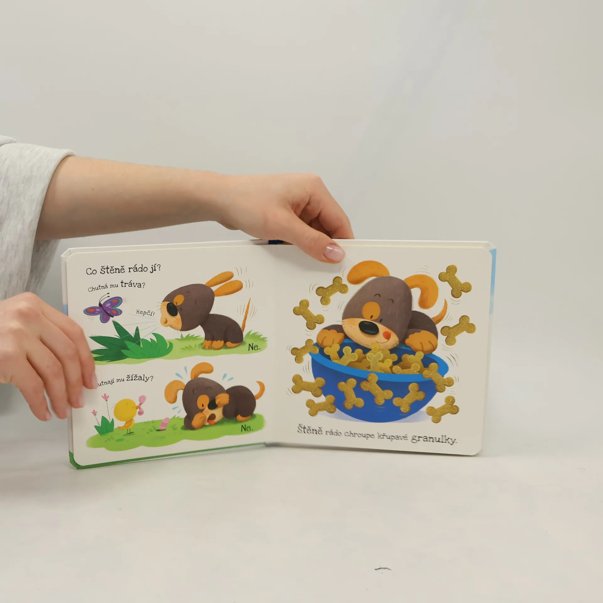 Knížka Co má štěně nejradši? pomocí roztomilých obrázků, hmatových plošek i vtipných otázek nenásilně uvede děti do psího světa a poskytne rodičům skvělý základ k vysvětlování, jak se ke štěňátku správně chovat.