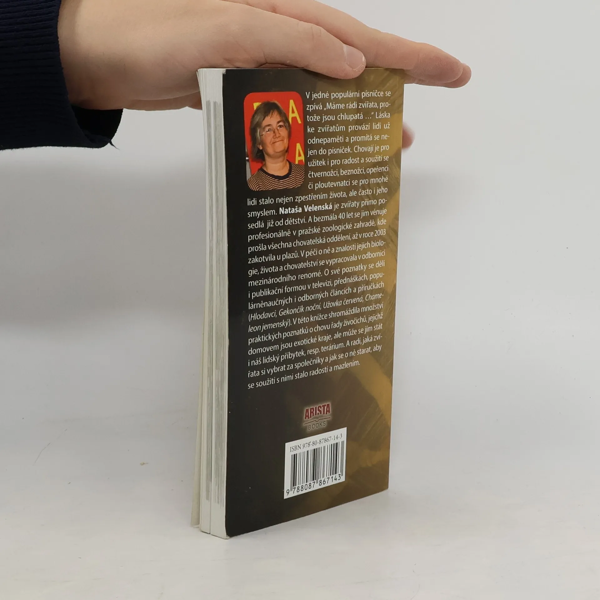 V jedné populární písničce se zpívá „Máme rádi zvířata, protože jsou chlupatá …“ Láska ke zvířatům provází lidi už odnepaměti a promítá se nejen do písniček. Chovají je pro užitek i pro radost a soužití se čtvernožci, beznožci, opeřenci či ploutevnatci se pro mnohé lidi stalo nejen zpestřením života, ale často i jeho smyslem. Nataša Velenská je zvířaty přímo posedlá již od dětství. A bezmála 40 let se jim věnuje profesionálně v pražské zoologické zahradě, kde prošla všechna chovatelská oddělení, až v roce 2003 zakotvila u plazů. V péči o ně a znalosti jejich biologie, života a chovatelství se vypracovala v odbornici mezinárodního renomé. O své poznatky se dělí i publikační formou v televizi, přednáškách, populárněnaučných i odborných článcích a příručkách (Hlodavci, Gekončík noční, Užovka červená, Chameleon jemenský). V této knížce shromáždila množství praktických poznatků o chovu řady živočichů, jejichž domovem jsou exotické kraje, ale může se jím stát i náš lidský příbytek, resp. terárium. A radí, jaká zvířata si vybrat za společníky a jak se o ně starat, aby se soužití s nimi stalo radostí a mazlením.