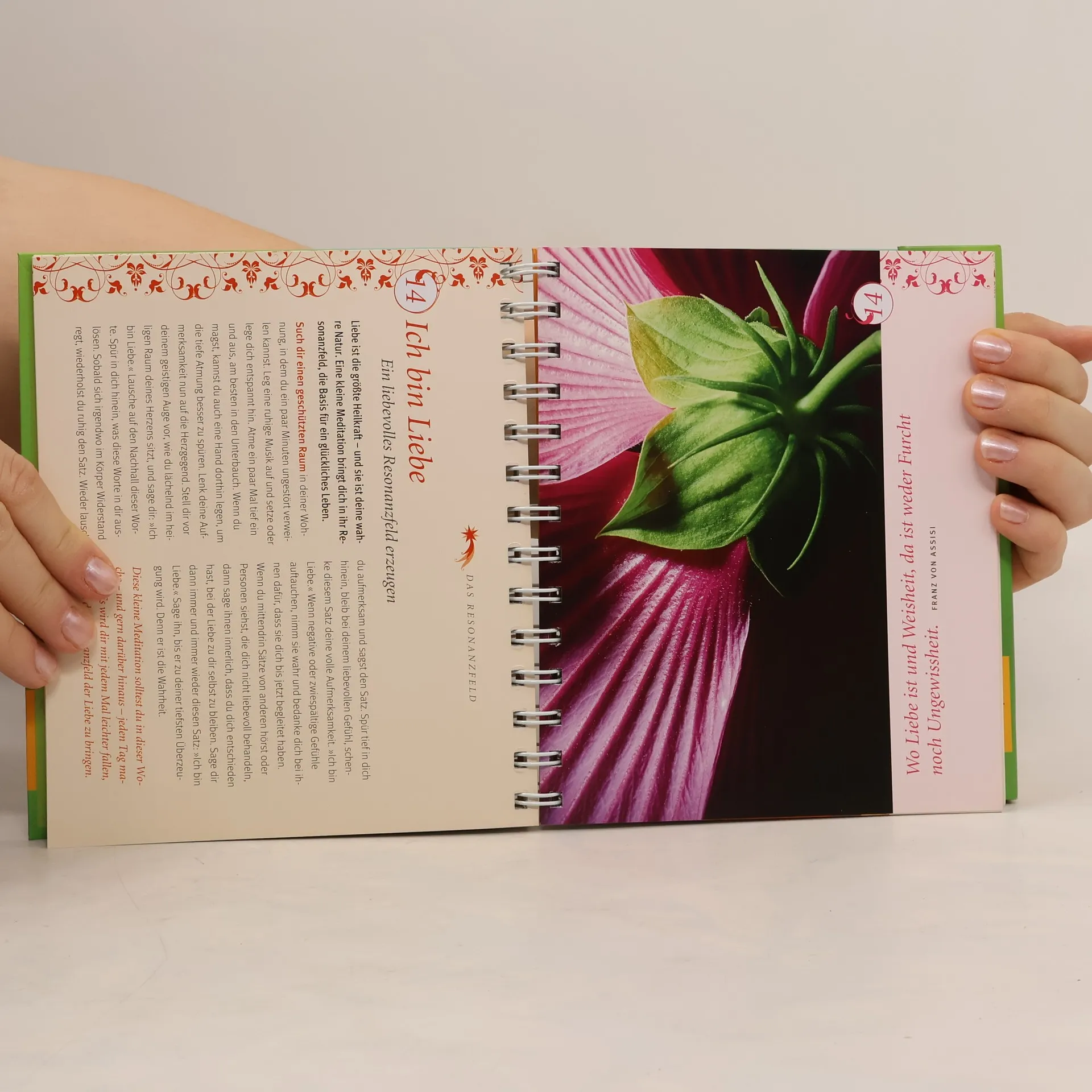 Ein Jahr lang in der Wunschkraft bleiben und sie immer stärker werden lassen, dazu verhilft dieser Tischaufsteller. Wie ein Kurs führt er den Leser zur Erfüllung seiner Wünsche. Grundlegend dafür ist es ein positives Resonanzfeld aufzubauen: Ein positives Selbstbild und ein liebevoller Umgang mit sich selbst und anderen führt zu einer kraftvollen Ausstrahlung, und diese wiederum zieht das Positive an. Dieses Gesetz der Resonanz kann sich jeder zunutze machen, um alles in sein Leben zu ziehen, was er oder sie sich wünscht. Auf dieser Basis hilft wöchentlich eine Übung, eine Meditation oder ein Ritual, sich immer mehr auf das zu fokussieren, was man wirklich in seinem Leben haben will, sei es Glück in der Liebe, Erfolg im Beruf, emotionale Heilung, Geborgenheit, Berufung oder Spiritualität. Der Tischaufsteller ist hochwertig gestaltet und mit brillanten Fotos bestückt. Jede Woche erinnern ein wunderschönes Bild und ein Zitat daran: Entfalte deine Wunschkraft!