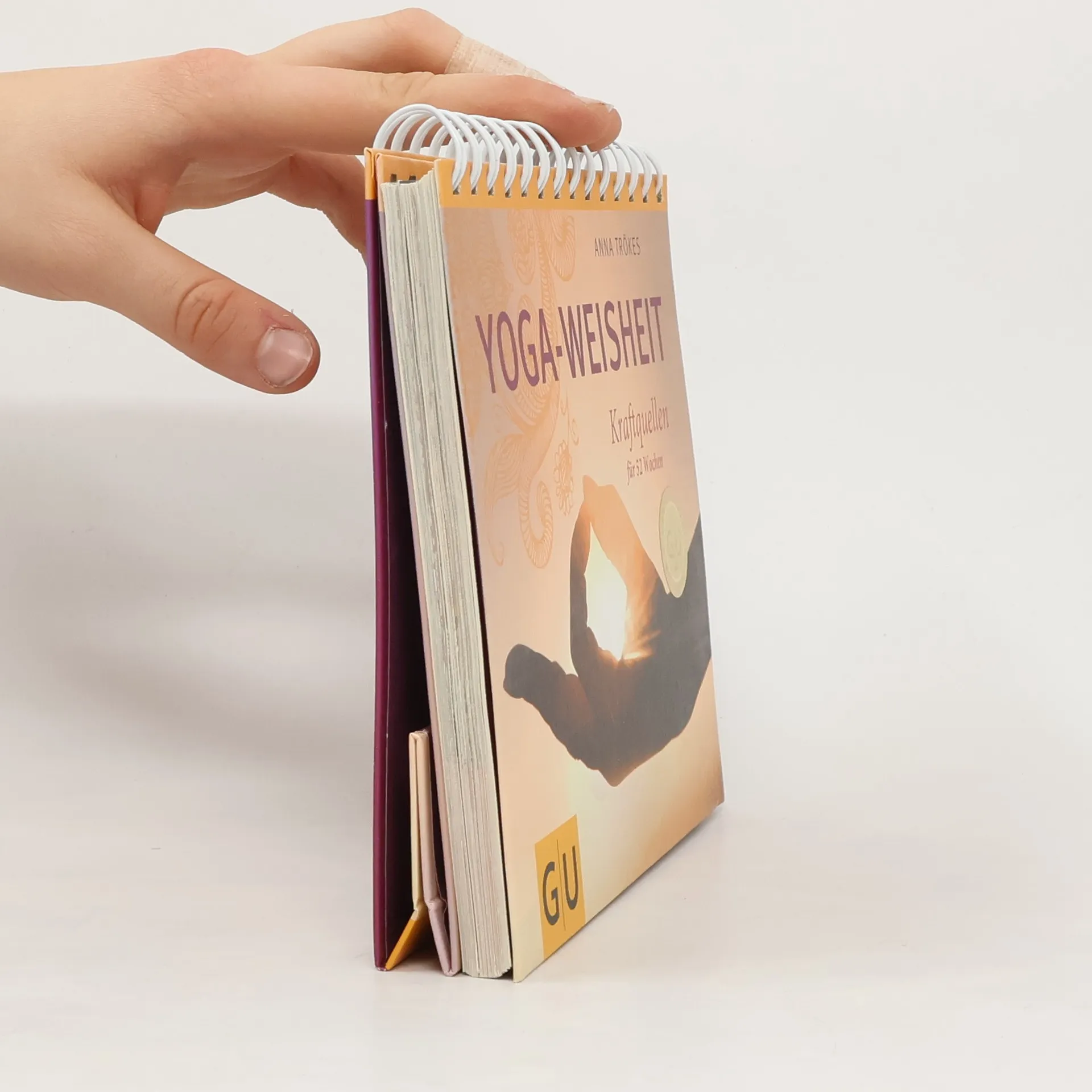 Wer Yoga praktiziert, interessiert sich oft nicht nur für die Körperübungen, sondern auch für die Philosophie, die dahinter steht. Yoga-Philosophie ist kein akademisches System für Intellektuelle. So wie die erfahrene Yogalehrerin und Bestsellerautorin Anna Trökes sie vermittelt, liefert sie praktische Unterstützung für unseren Alltag. Für den inspirierenden Tischaufsteller hat die Autorin dreizehn große Lebensthemen wie Vertrauen entwickeln, innere Kraftquellen finden, zur Ruhe kommen, den Geist stabilisieren, innere Zufriedenheit kultivieren, ausgewählt. Zu jedem dieser Themen gibt es vier Übungsanleitungen -Meditationen, Kontemplationen, Reflexionen- und vier passende Fotos mit Zitaten, Der Leser hat die Möglichkeit, sich von diesem Tischaufsteller durch die 52 Wochen eines Jahres begleiten und führen oder sich je nach Lust und Laune inspirieren zu lassen. Ein wunderschönes Geschenk nicht nur für Yoga-Praktizierende, sondern für alle, die offen sind für fernöstliche Weisheit.