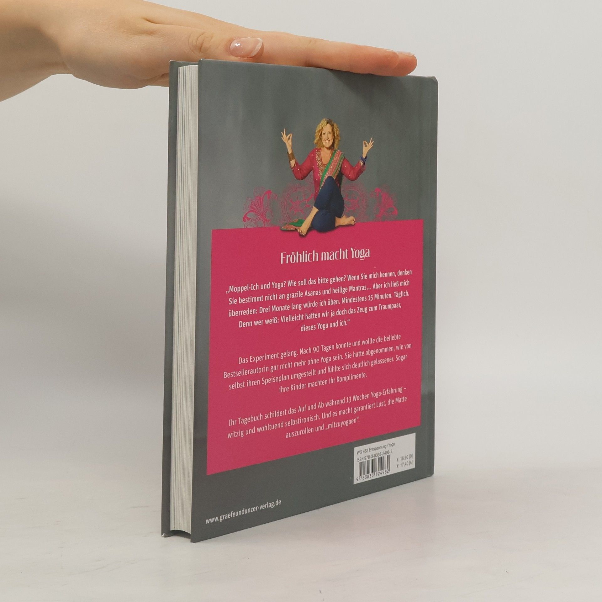 Mit einer großen Portion Skepsis und jeder Menge Vorurteilen tritt Susanne Fröhlich ihr neues Yoga-Projekt an. Drei Monate lang lässt sie die Leser teilhaben an ihrer Suche nach einem neuen Körpergefühl und dem täglichen Kampf gegen den inneren Yoga-Schweinehund. Was passiert, wenn das Moppel-Ich auf eine Yogamatte trifft und in die unbekannte Welt der Asanas eintaucht, erzählt die Bestsellerautorin gewohnt locker, selbstironisch und wie immer mit einem Augenzwinkern. Das Buch zeigt aber auch, dass Yoga bei jeder Kleidergröße Spaß machen kann und macht Mut, innere Hemmschwellen zu überwinden.