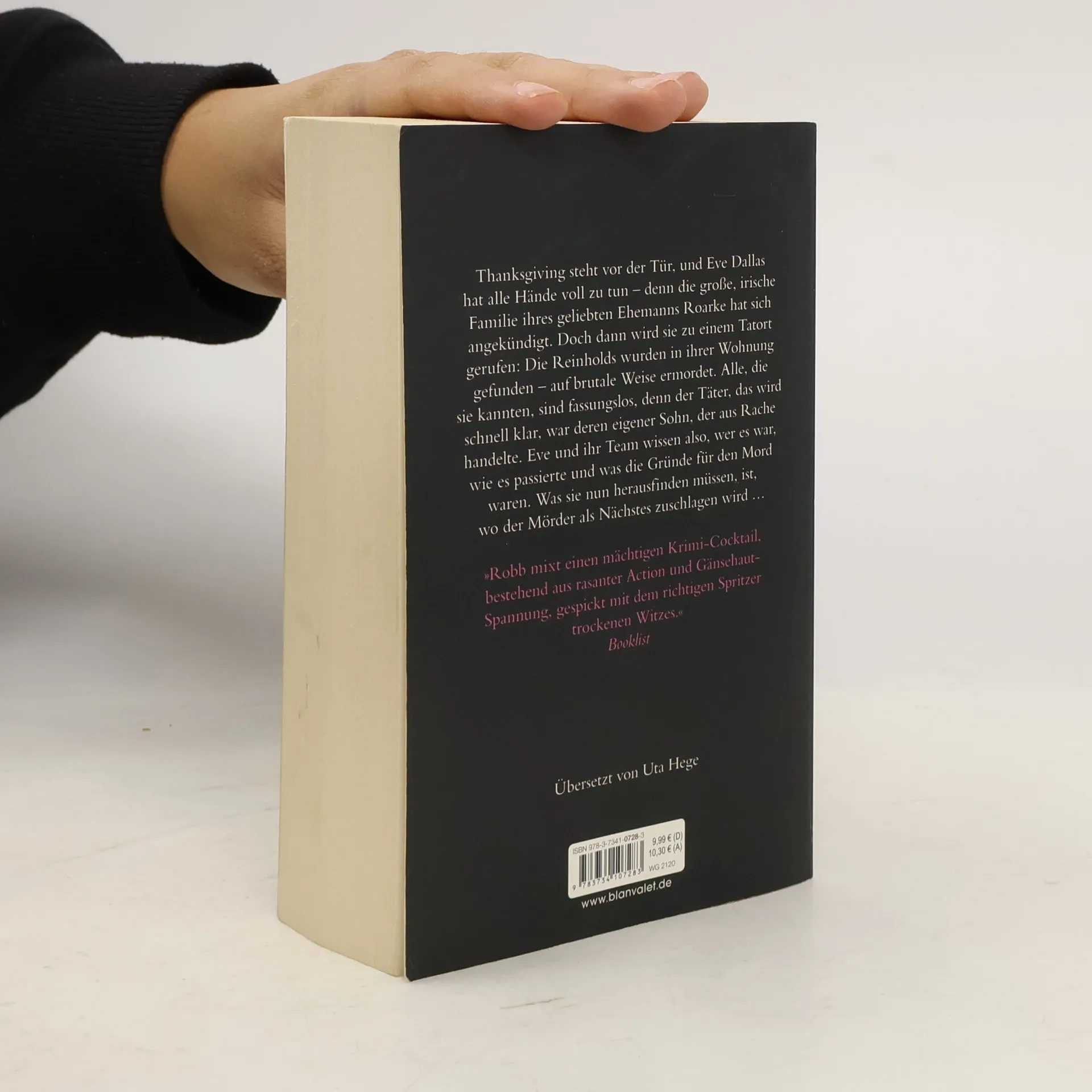 Sie kennen den Täter, die Methode, sein Motiv – doch nicht sein nächstes Opfer ... Thanksgiving steht vor der Tür, und Eve Dallas vom New-York-Police-Department hat alle Hände voll zu tun – denn die große, irische Familie ihres geliebten Ehemanns Roarke hat sich angekündigt. Doch dann wird sie zu einem Tatort gerufen: Die Reinholds wurden in ihrer Wohnung gefunden – auf brutale Weise ermordet. Alle, die sie kannten, sind fassungslos, denn der Täter, das wird schnell klar, war deren eigener Sohn, der aus Rache handelte. Eve und ihr Team wissen also, wer es war, wie es passierte und was die Gründe für den Mord waren. Was sie nun herausfinden müssen, ist, wo der Mörder als Nächstes zuschlagen wird …