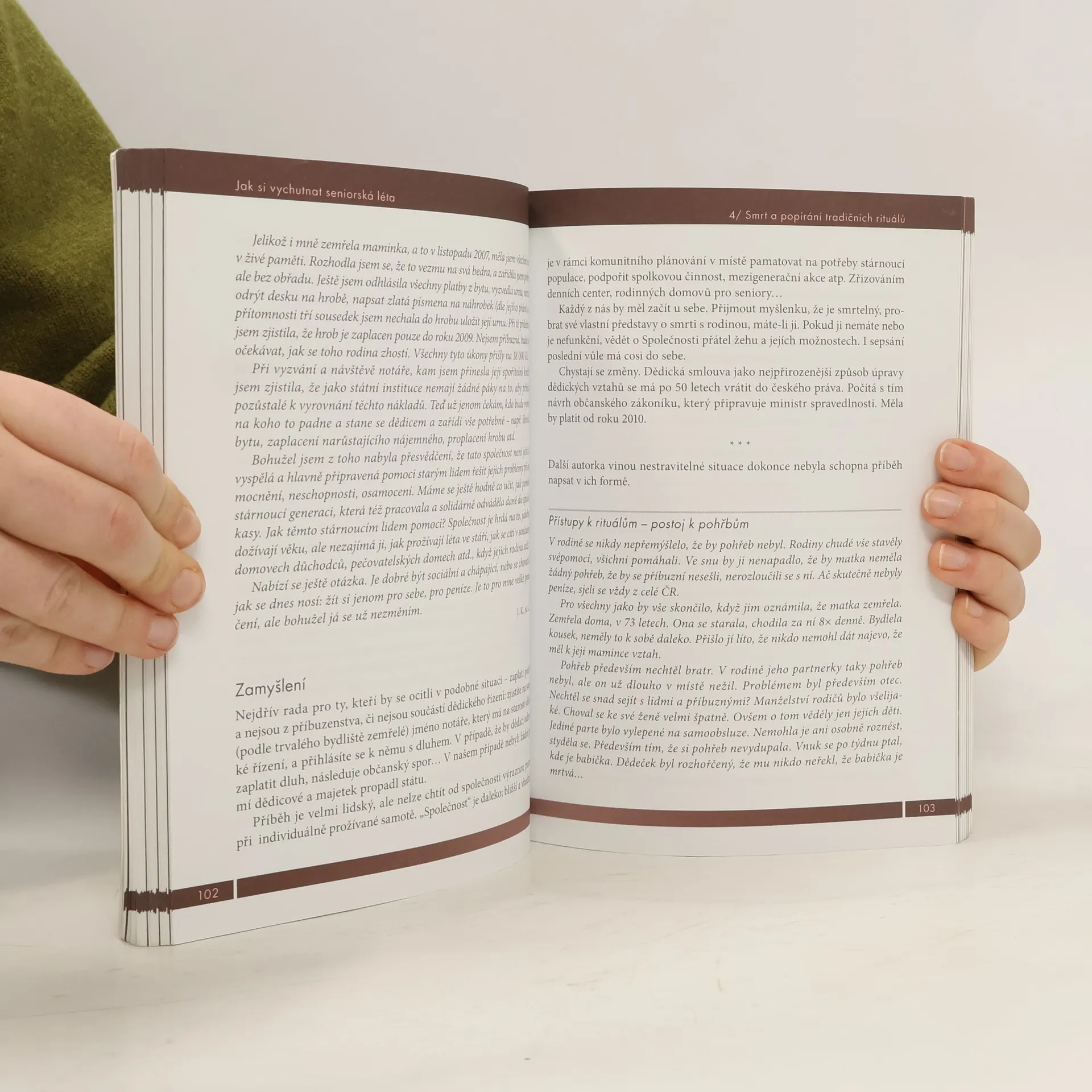 Chcete se i v pokročilém věku cítit šťastní, spokojení a obklopení blízkými lidmi? Autorka, odbornice na problematiku seniorů, vám za pomoci svých známých, přátel a dalších lidí ochotných podělit se o své osobní příběhy a zkušenosti, prozradí, jak na to. Nečekejte nic světoborného a velkého, vždyť i velké věci jsou skryty v maličkostech. Co vám chce kniha říci? Stářím život nekončí! Stáří je jen další etapou života, i když možná o něco těžší, ve které to jste stále vy, stále máte ty své starosti a i radosti, stále se můžete strachovat o budoucnost anebo se radovat z toho, co vám přináší každý nový den. Můžete se přestěhovat na venkov nebo do města, kam vás jen srdce táhne. Můžete pracovat, dokud vám budou síly a chuť k tomu stačit, můžete svůj volný čas věnovat vnoučatům, ale můžete jej také věnovat sobě a najít svá dosud skrytá nadání. Můžete se nebát internetu a dalších vymožeností dnešní doby, a tak držet krok se svými vnoučaty. Mezi námi, ony vám s tím jistě rády pomohou. Držíte v ruce knihu, která je živá, plná energie a chuti do života. Je to tím, že její text není jen pouhým zamyšlením nad stárnutím. Jedná se o knihu spletenou z konkrétních příběhů konkrétních lidí. Co jiného může k lidem lépe promlouvat než život sám se svými radostmi i starostmi, možnostmi i nemožnostmi, zármutkem a veselím?