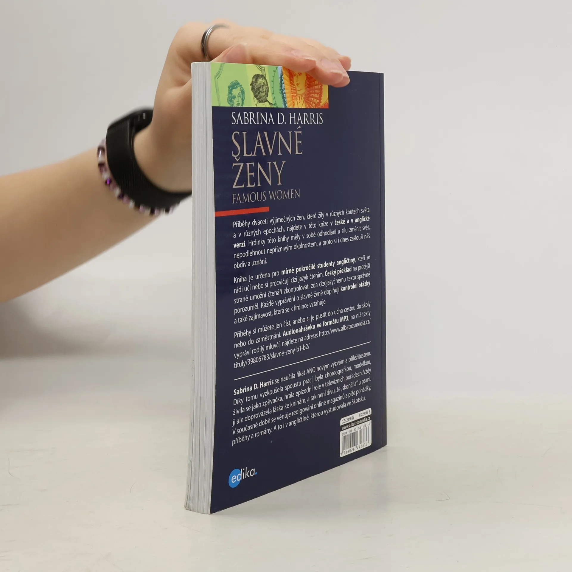 Příběhy dvaceti výjimečných žen, které žily v různých koutech světa a v různých epochách, najdete v této knize v české a v anglické verzi. Hrdinky této knihy měly v sobě odhodlání a sílu změnit svět, nepodlehnout nepříznivým okolnostem, a proto si i dnes zaslouží náš obdiv a uznání. Kniha je určena pro mírně pokročilé studenty angličtiny, kteří se rádi učí nebo si procvičují cizí jazyk čtením. Český překlad na protější straně umožní čtenáři zkontrolovat, zda cizojazyčnému textu správně porozuměl. Každé vyprávění o slavné ženě doplňují otázky na porozumění a také zajímavost, která se k hrdince vztahuje. Příběhy si můžete jen číst, anebo si je pustit do ucha cestou do školy nebo do zaměstnání. Audionahrávku ve formátu MP3, na níž texty namluvil rodilý mluvčí - Charles du Parc, najdete na stránkách Albatros Media.