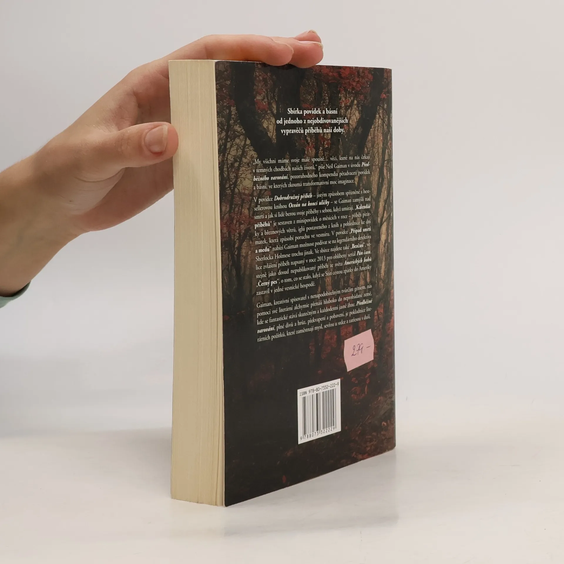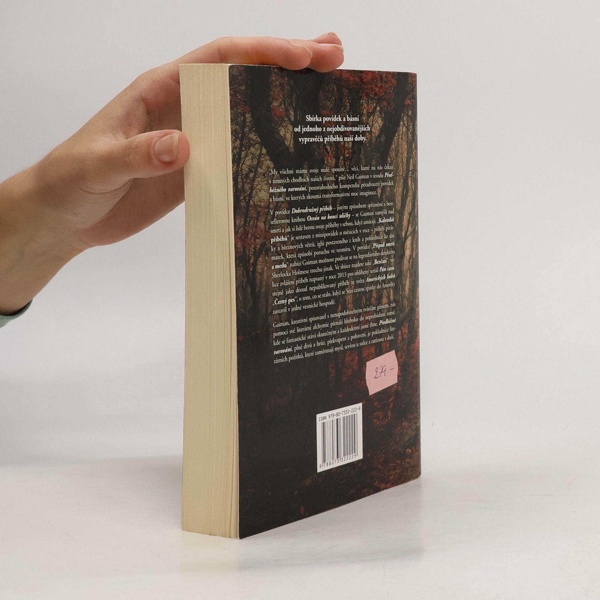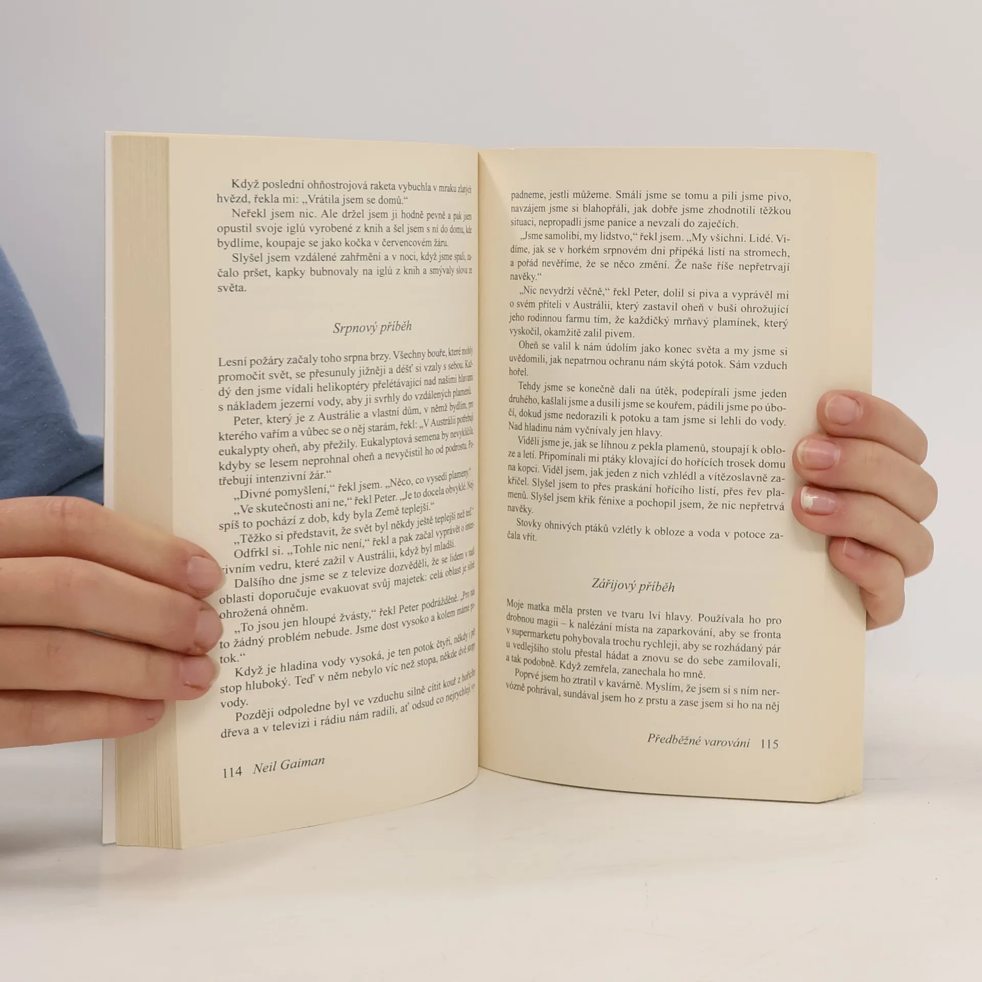 „My všichni máme svoje malé spouště… věci, které na nás čekají v temných chodbách našich životů,“ píše Neil Gaiman v úvodu Předběžného varování, pozoruhodného kompendia pětadvaceti povídek a básní, ve kterých zkoumá transformativní moc imaginace. V povídce "Dobrodružný příběh" – jistým způsobem spřízněné s knihou Oceán na konci uličky – se Gaiman zamýšlí nad smrtí a jak si lidé berou svoje příběhy s sebou, když umírají. „Kalendář příběhů“ je sestaven z minipovídek o měsících v roce – příběh pirátky a březnových větrů, iglú postaveného z knih a pohlednice ke Dni matek, která způsobí poruchu ve vesmíru. V povídce „Případ smrti a medu“ nabízí Gaiman možnost podívat se na legendárního detektiva Sherlocka Holmese trochu jinak. Ve sbírce najdete také „Bezčasí“, velice zvláštní příběh napsáný v roce 2013 pro oblíbený seriál Pán času, stejně jako dosud nepublikovaný příběh ze světa Amerických bohů „Černý pes“ o tom, co se stalo, když se Stín cestou zpátky do Ameriky zastavil v jedné vesnické hospodě. Gaiman, kreativní spisovatel s nenapodobitelným tvůrčím géniem, nás pomocí své literární alchymie přenáší hluboko do neprobádané země, kde se fantastické stává skutečným a každodenní jasně žhne. Předběžné varování, plné divů a hrůz, překvapení a pobavení, je pokladnice literárních požitků, které zaměstnají mysl, sevřou u srdce a zatřesou s duší.