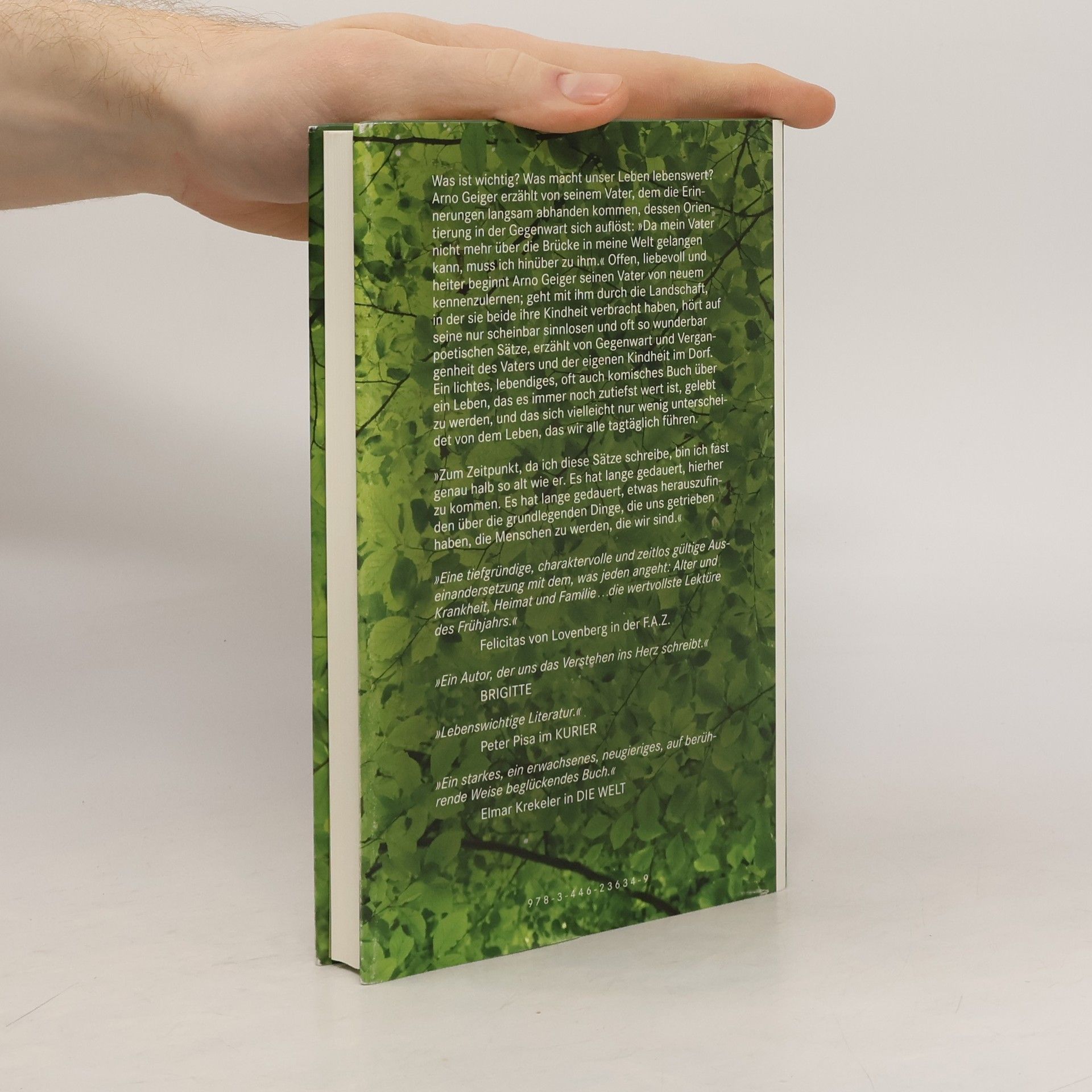 Arno Geiger hat ein tief berührendes Buch über seinen Vater geschrieben, der trotz seiner Alzheimerkrankheit mit Vitalität, Witz und Klugheit beeindruckt. Die Krankheit löst langsam seine Erinnerung und seine Orientierung in der Gegenwart auf, lässt sein Leben abhandenkommen. Arno Geiger erzählt, wie er nochmals Freundschaft mit seinem Vater schließt und ihn viele Jahre begleitet. In nur scheinbar sinnlosen und oft so wunderbar poetischen Sätzen entdeckt er, dass es auch im Alter in der Person des Vaters noch alles gibt: Charme, Witz, Selbstbewusstsein und Würde. Arno Geigers Buch ist lebendig, oft komisch. In seiner tief berührenden Geschichte erzählt er von einem Leben, das es immer noch zutiefst wert ist, gelebt zu werden.