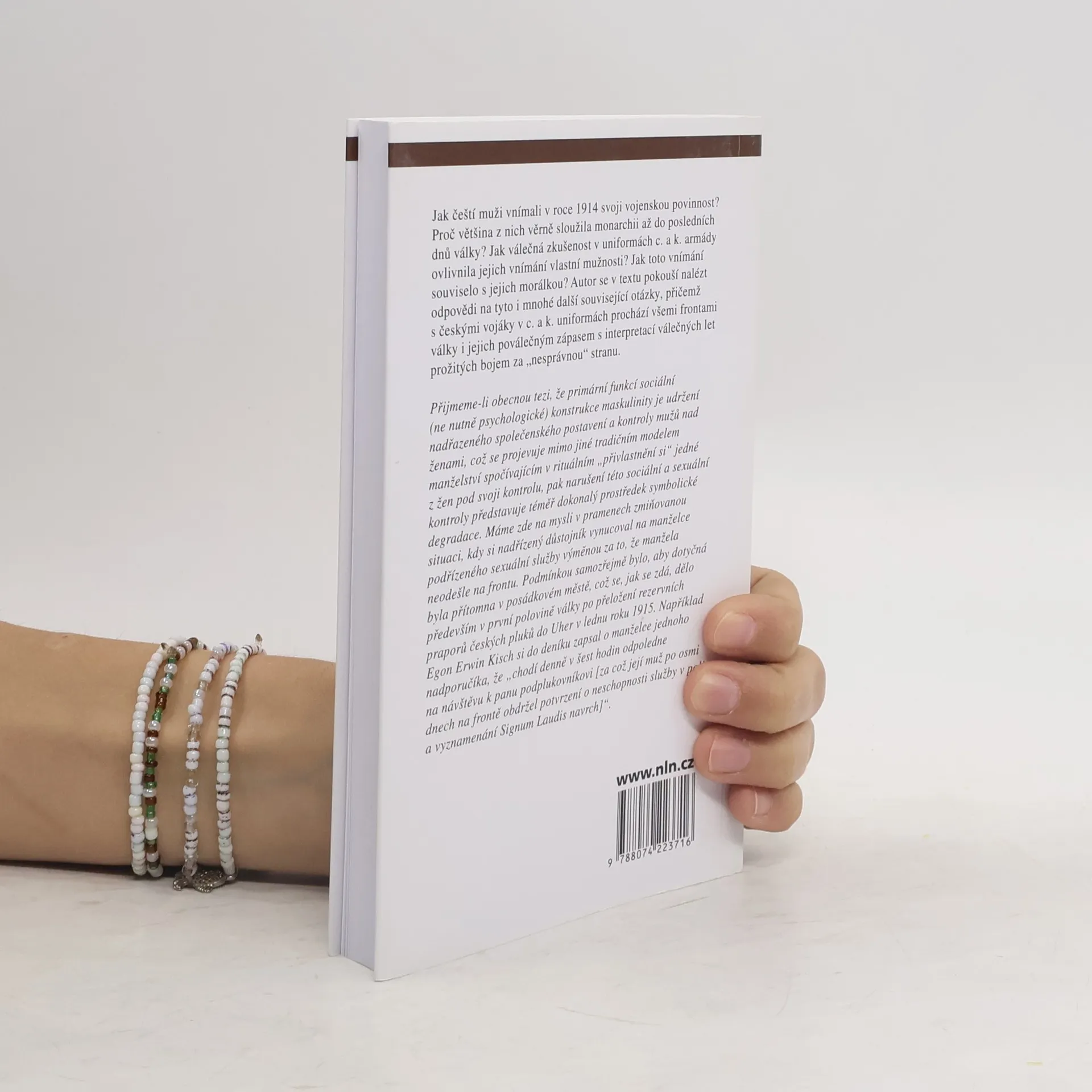 Motivace, morálka a mužnost českých vojáků Velké války 1914–1918. Jak čeští muži vnímali v roce 1914 svoji vojenskou povinnost? Proč většina z nich věrně sloužila monarchii až do posledních dnů války? Jak válečná zkušenost v uniformách c. a k. armády ovlivnila jejich vnímání vlastní mužnosti? Jak toto vnímání souviselo s jejich morálkou? Autor se v textu pokouší nalézt odpovědi na tyto i mnohé další související otázky, přičemž s českými vojáky v c. a k. uniformách prochází všemi frontami války i jejich poválečným zápasem s interpretací válečných let prožitých bojem za „nesprávnou“ stranu konfliktu.