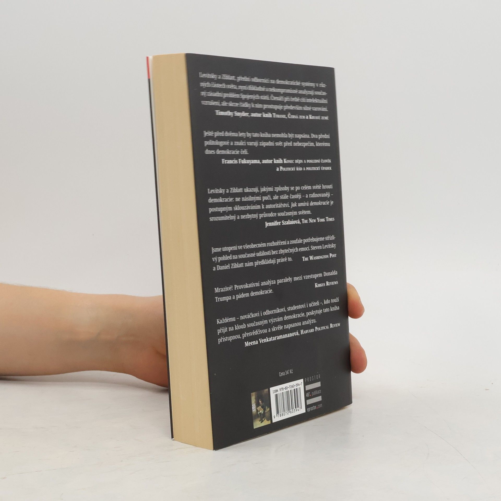 Když Donald Trump vyhrál volby, mnozí si položili otázku, o níž si nikdo nemyslel, že si ji budeme klást: Je demokracie v USA v ohrožení? Steven Levitsky a Daniel Ziblatt, profesoři Harvardovy univerzity, se rozpadem demokracií v Evropě a Latinské Americe zabývají již více než dvacet let. Oba si myslí, že odpověď na výše položenou otázku je ano. Demokracie už dnes neumírá s výstřely – během revolucí nebo vojenských pučů –, ale pomalu, neustálým ochabováním „hlídacích psů demokracie“, tedy justice a tisku, a rostoucí erozí základních politických norem. Ještě stále však máme možnost cestu k autoritářskému režimu opustit. Levitsky a Ziblatt staví na desítkách let výzkumů a široké řadě historických a globálních příkladů sahajících od Evropy třicátých let k dnešnímu Maďarsku, od Turecka a Venezuely až po americký Jih během platnosti zákonů Jima Crowa. Ukazují na nich, jak demokracie umírá – a jak může být ještě zachráněna.