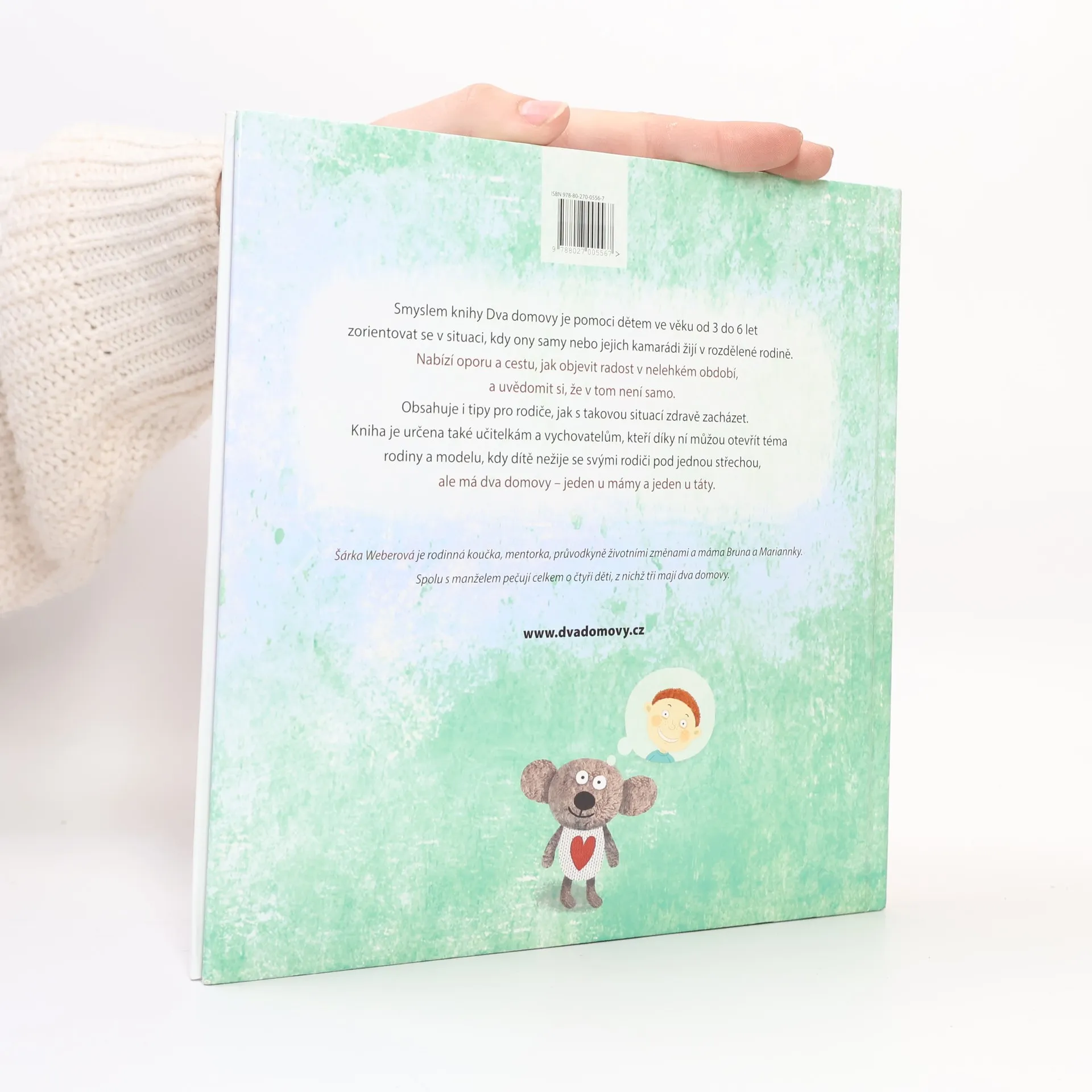 Laskavý průvodce pro děti po rozchodu rodičů. Smyslem knihy Dva domovy je pomoci dětem ve věku od 3 do 6 let zorientovat se v situaci, kdy ony samy nebo jejich kamarádi žijí v rozdělené rodině. Nabízí oporu a cestu, jak objevit radost v nelehkém období, a uvědomit si, že v tom není samo. Obsahuje i tipy pro rodiče, jak s takovou situací zdravě zacházet. Kniha je určena také učitelkám a vychovatelům, kteří díky ní můžou otevřít téma rodiny a modelu, kdy dítě nežije se svými rodiči pod jednou střechou, ale má dva domovy – jeden u mámy a jeden u táty.