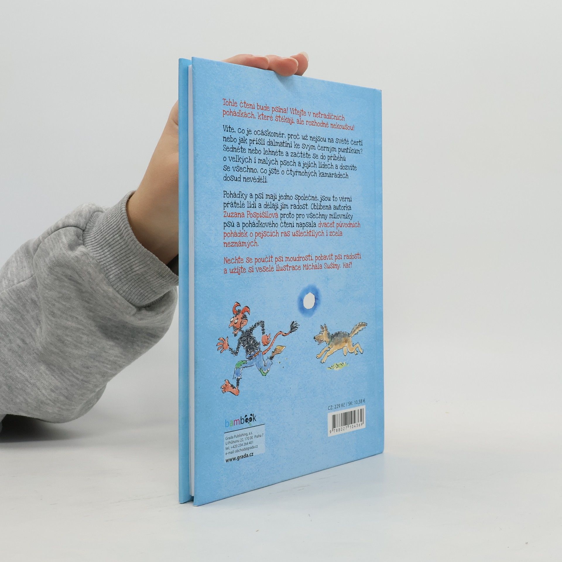 Pohádky a psi mají jedno společné, jsou to věrní přátelé lidí a dělají jim radost. Oblíbená autorka Zuzana Pospíšilová proto pro všechny milovníky psů a pohádkového čtení napsala dvacet původních pohádek o pejscích ras ušlechtilých i zcela neznámých. V téhle knížce vyvádějí psi neuvěřitelné kousky. Fenka Sisi zpívá, z pejska Fleka se stane malíř a kokršpaněl Bady se chce učit španělsky. Nechte se poučit psí moudrostí, pobavit psí radostí a užijte si veselé ilustrace Michala Sušiny. Haf!