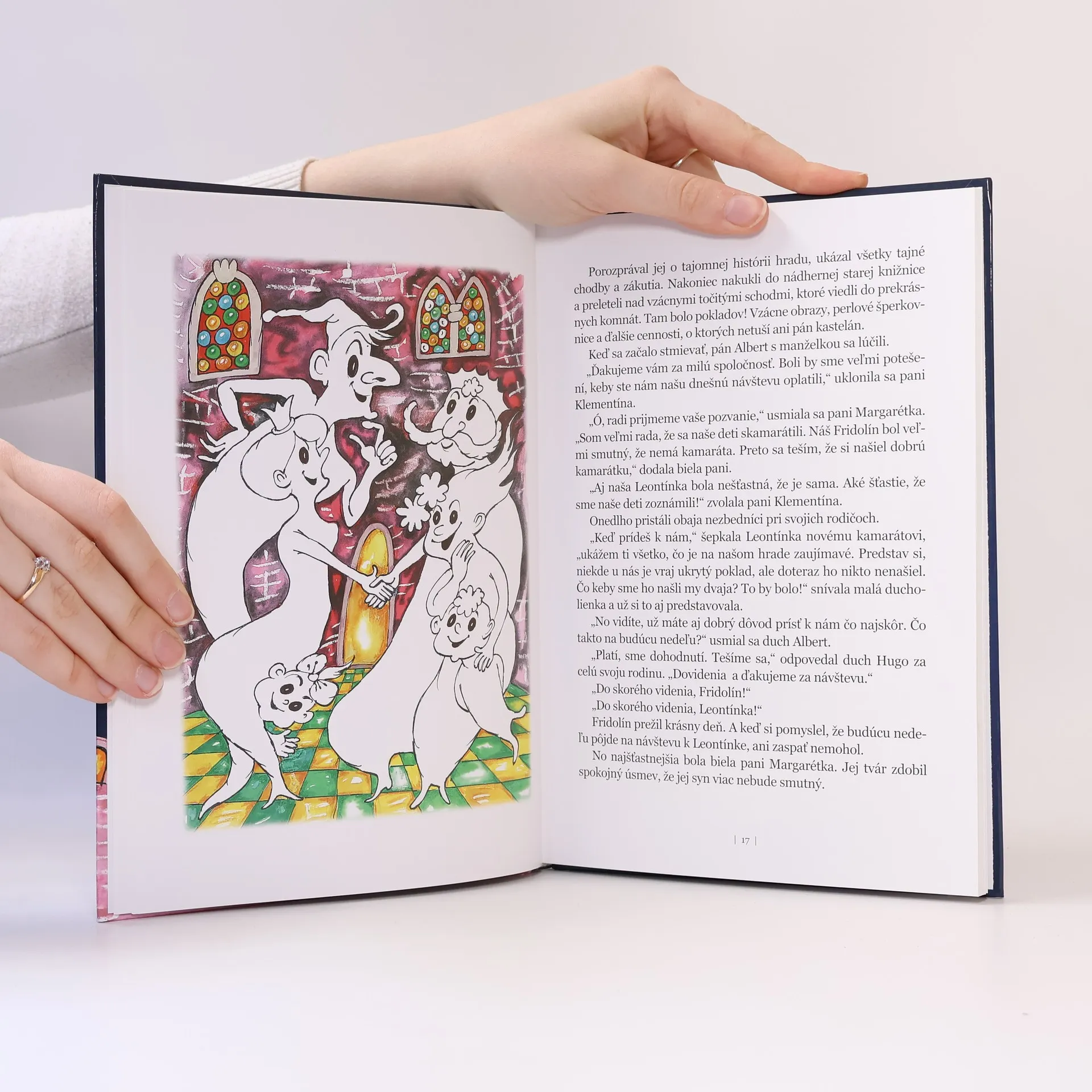 Malý nezbedník Fridolín je duch. Býva v starobylom hrade s ockom Hugom a mamkou Margarétkou. Zoznámi sa s ducholienkou Leontínkou, ba i s bludným duchom Bonifácom. Objaví tajomný poklad, zažije pravé Vianoce a veľa ďalších dobrodružstiev. Chcete vedieť, kto je vežový mužíček? Zaujíma vás, či dokáže Fridolín lietať cez steny? Čo sa stane s duchom, ktorý často privoniava v komíne? Ako oslavujú duchovia Deň detí? Zoznámte sa s duchom Fridolínom a dozviete sa omnoho viac...