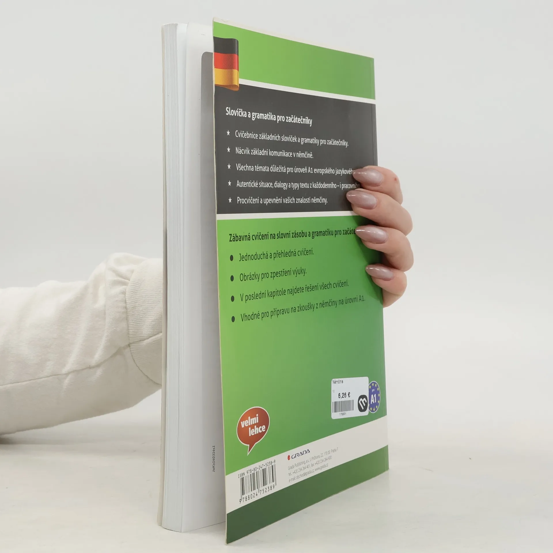 Cvičebnice slovní zásoby a základní gramatiky pro ty, kdo s němčinou začínají a jsou tedy na úrovni A1 evropského jazykového referenčního rámce. Svou znalost slovíček a základní gramatiky si procvičíte na různých druzích cvičení, která obsahují i běžné typy autentických textů. K procvičení a upevnění vašich znalostí němčiny vám poslouží přehledná, často ilustrovaná cvičení a řešení všech úloh na konci knihy. Kniha je vhodné i pro přípravu na zkoušky z němčiny na úrovni A1.